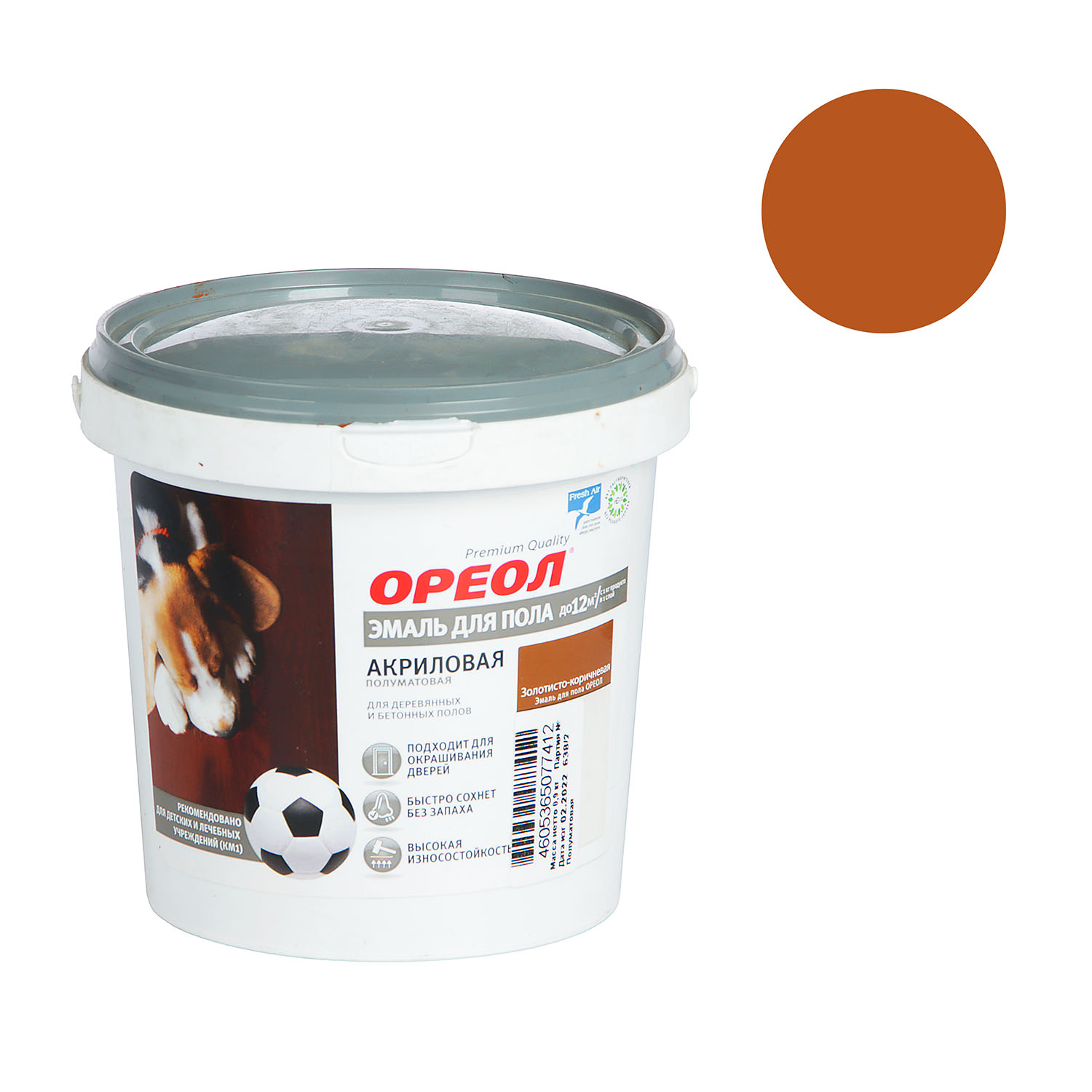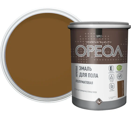 Эмаль акриловая для пола золотисто-коричневая полуматовая 0,9 кг Ореол *1/6/588
