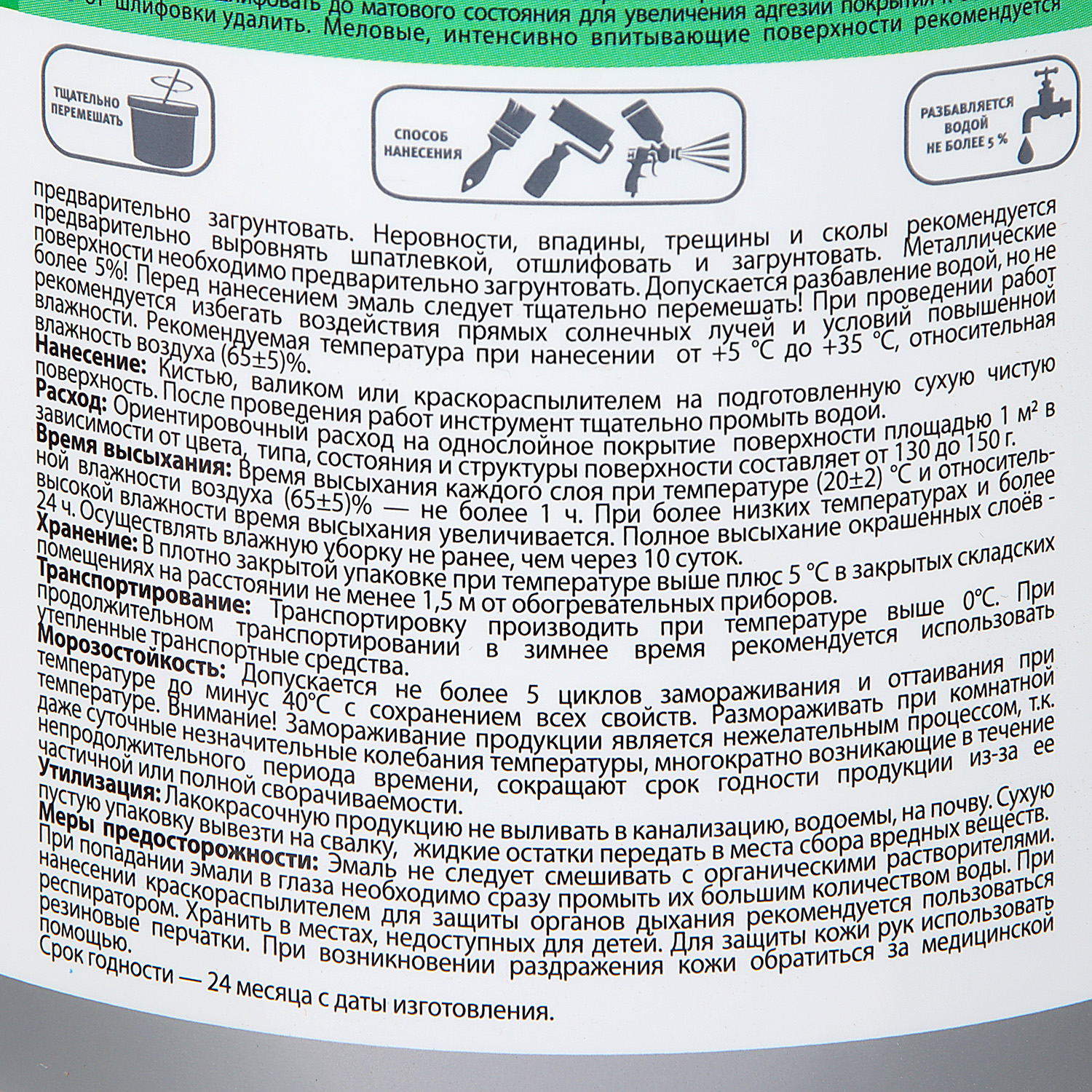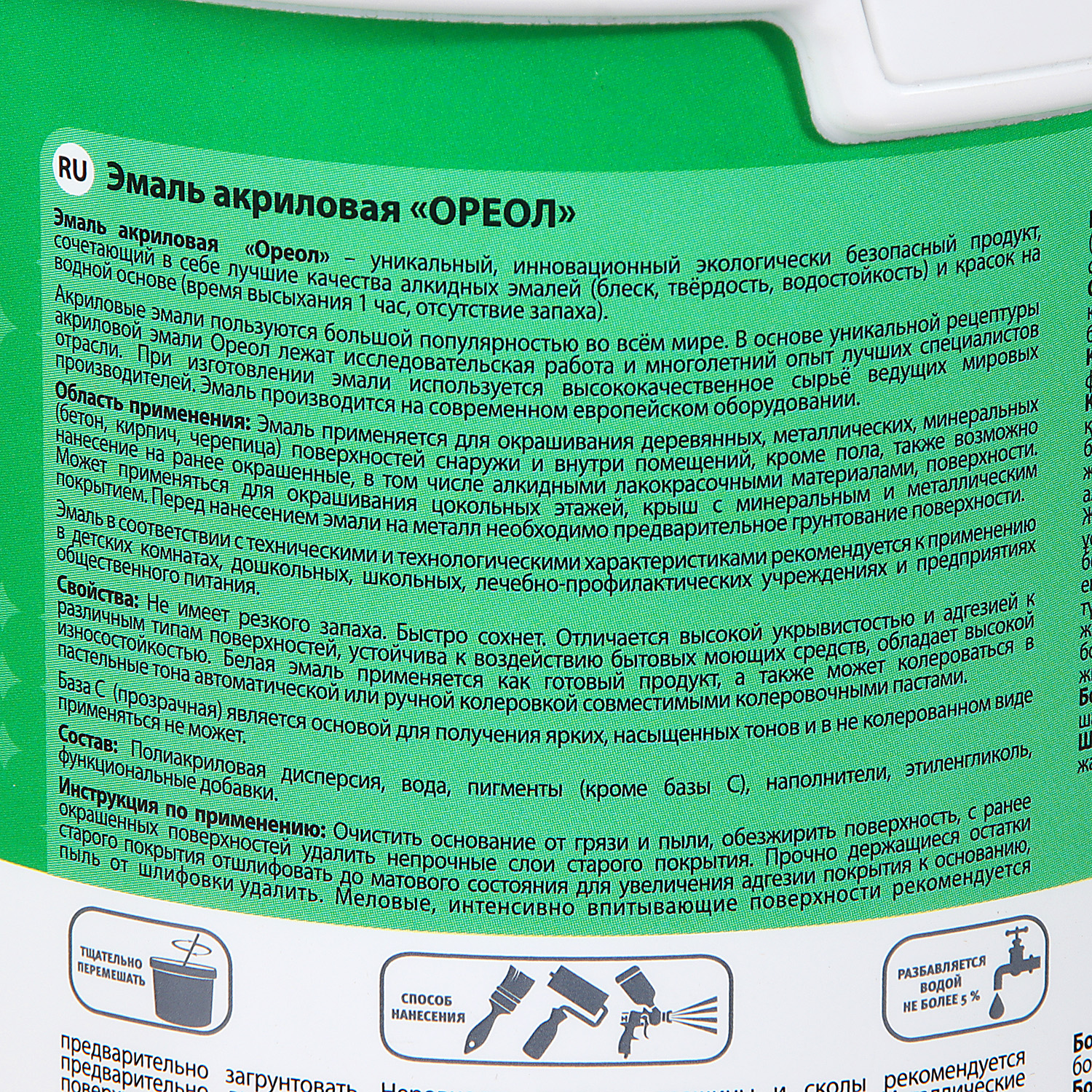 Состав Акриловое пленкообразующее вещество, пигменты, наполнители, специальные добавки, вода