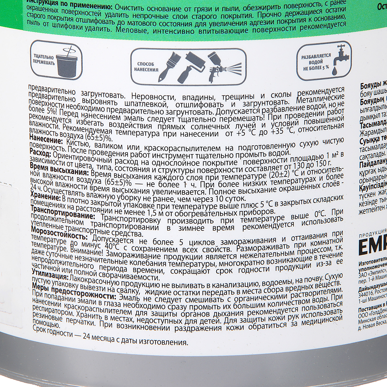 Применяется для окрашивания деревянных, металлических, минеральных (бетон, кирпич, черепица) поверхностей снаружи и внутри помещений, кроме пола, также возможно нанесение на ранее окрашенные, в том числе алкидными лакокрасочными материалами, поверхности. Может применяться для окрашивания цокольных этажей, крыш с минеральными покрытиями. Перед нанесением эмали на металл необходимо предварительно грунтование поверхности. Эмаль в соответствии с техническими и технологическими характеристиками рекомендуется к применению в детских комнатах, дошкольных, школьных, лечебно-профилактических учреждениях и предприятиях общественного питания.