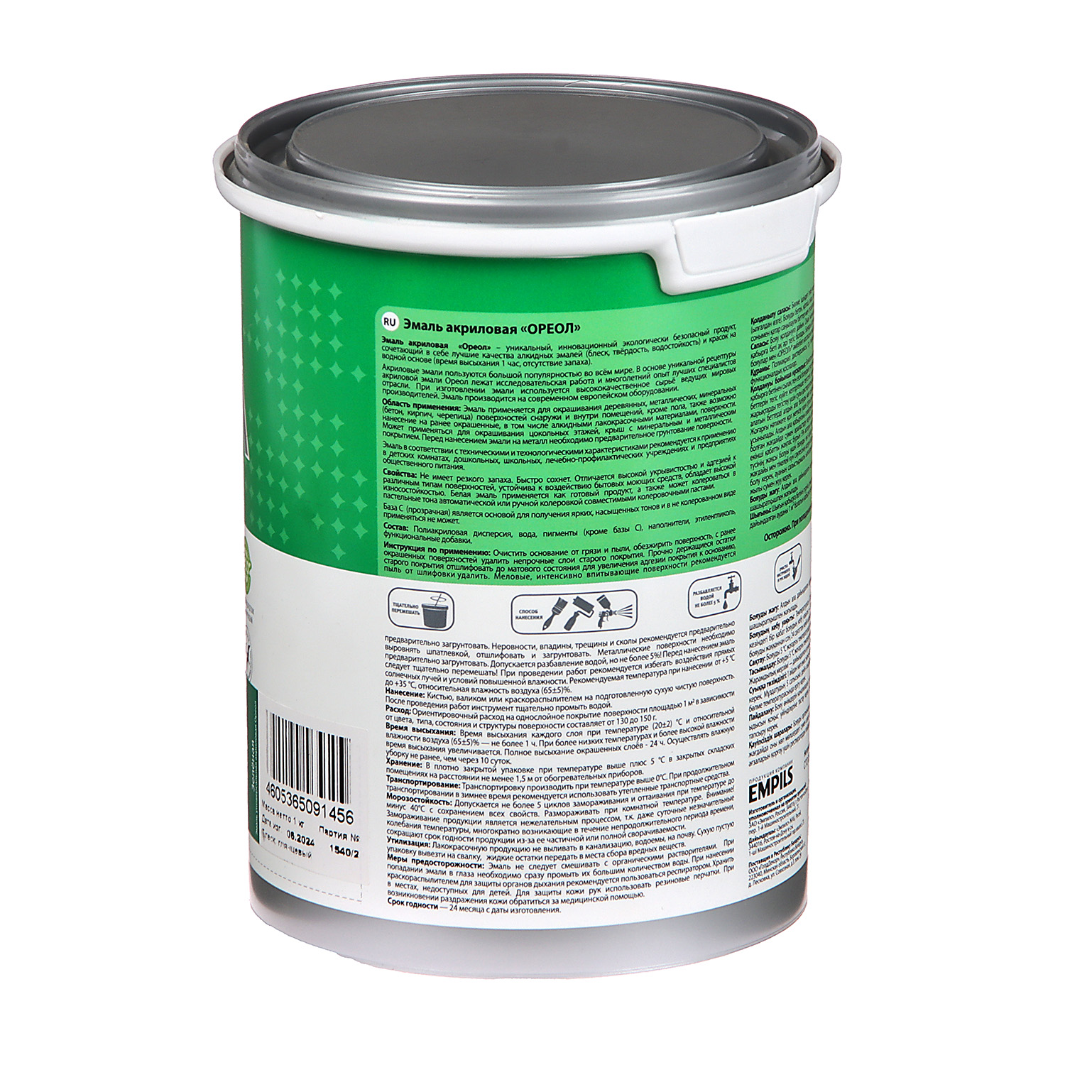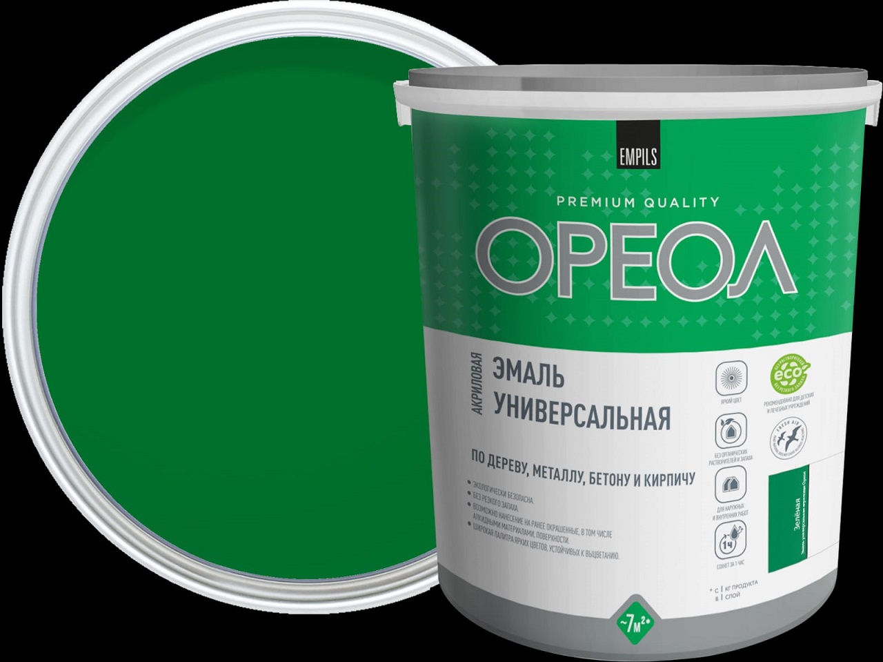 Эмаль акриловая зеленая 1 кг Ореол *1/6/336
