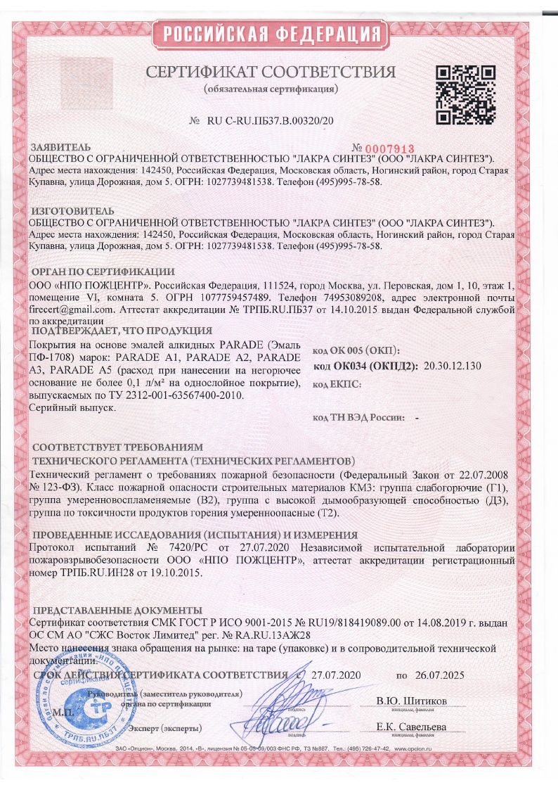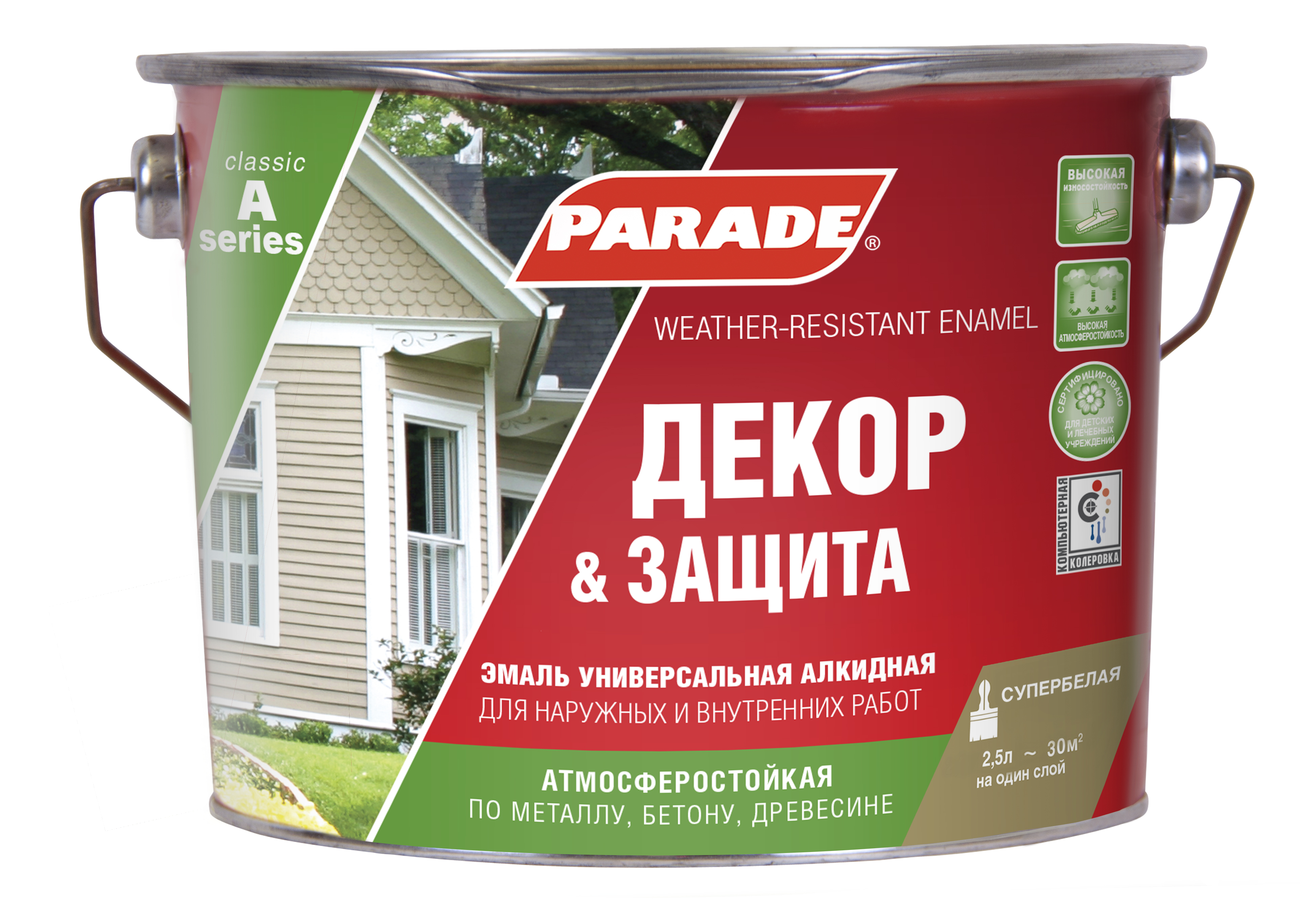 Эмаль на основе высококачественных алкидных смол и очищенного растворителя. Образуемая пленка обладает высокими декоративными и защитными свойствами. Для внутренних и наружных работ Супербелое покрытие с высокими декоративными свойствами Различные степени блеска: А1 - матовая, А2 - полуматовая, А3 - глянцевая Высокая атмосферостойкость и износостойкость Отличная укрывистость, прочное сцепление с окрашиваемой поверхностью Быстро высыхает Сертифицирована для применения в детских и лечебных учреждениях Колеровка компьютерная по системе PARADE или универсальными колерами