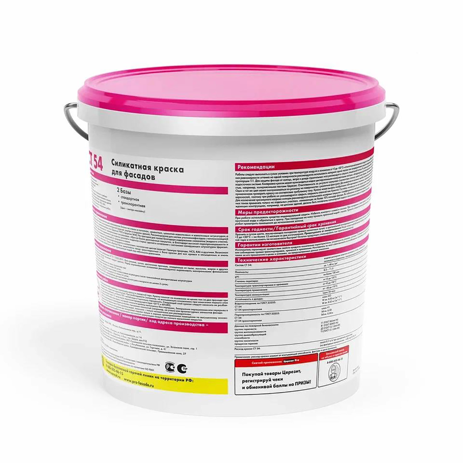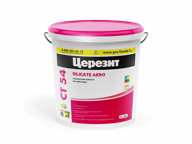 Силикатная краска CT 54 предназначена для окрашивания всех видов декоративных штукатурных покрытий Ceresit, а также бетона, цементно-песчаных, цементно-известковых и известковых штукатурок, как внутри, так и снаружи зданий.