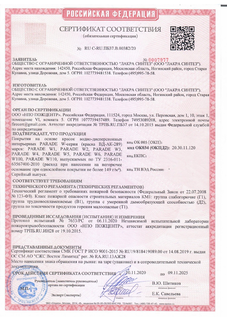 Долговечность интерьерного покрытия – более 5 лет.