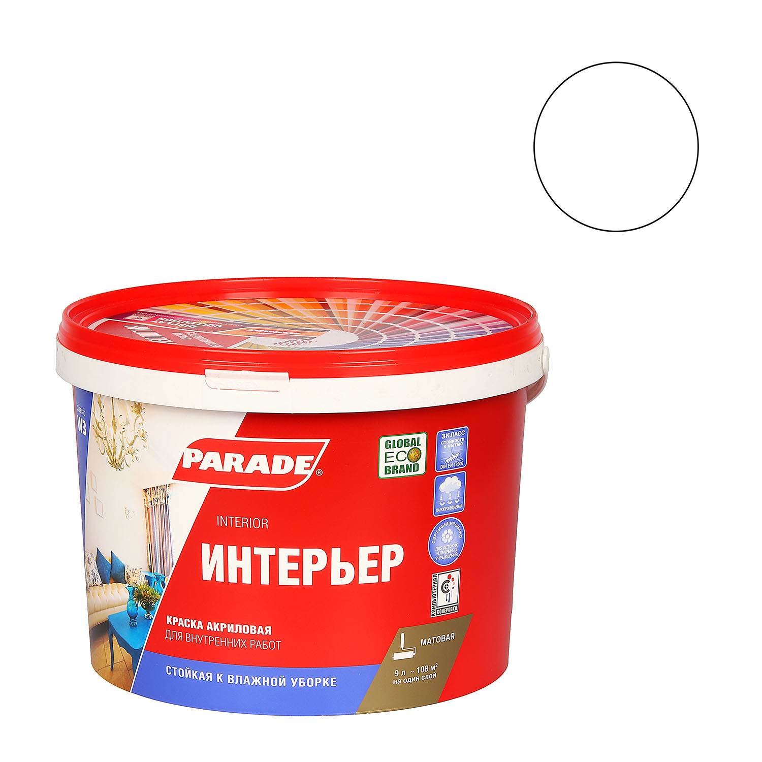 Применяется для стен и потолков, а также окраски обоев, в помещениях,