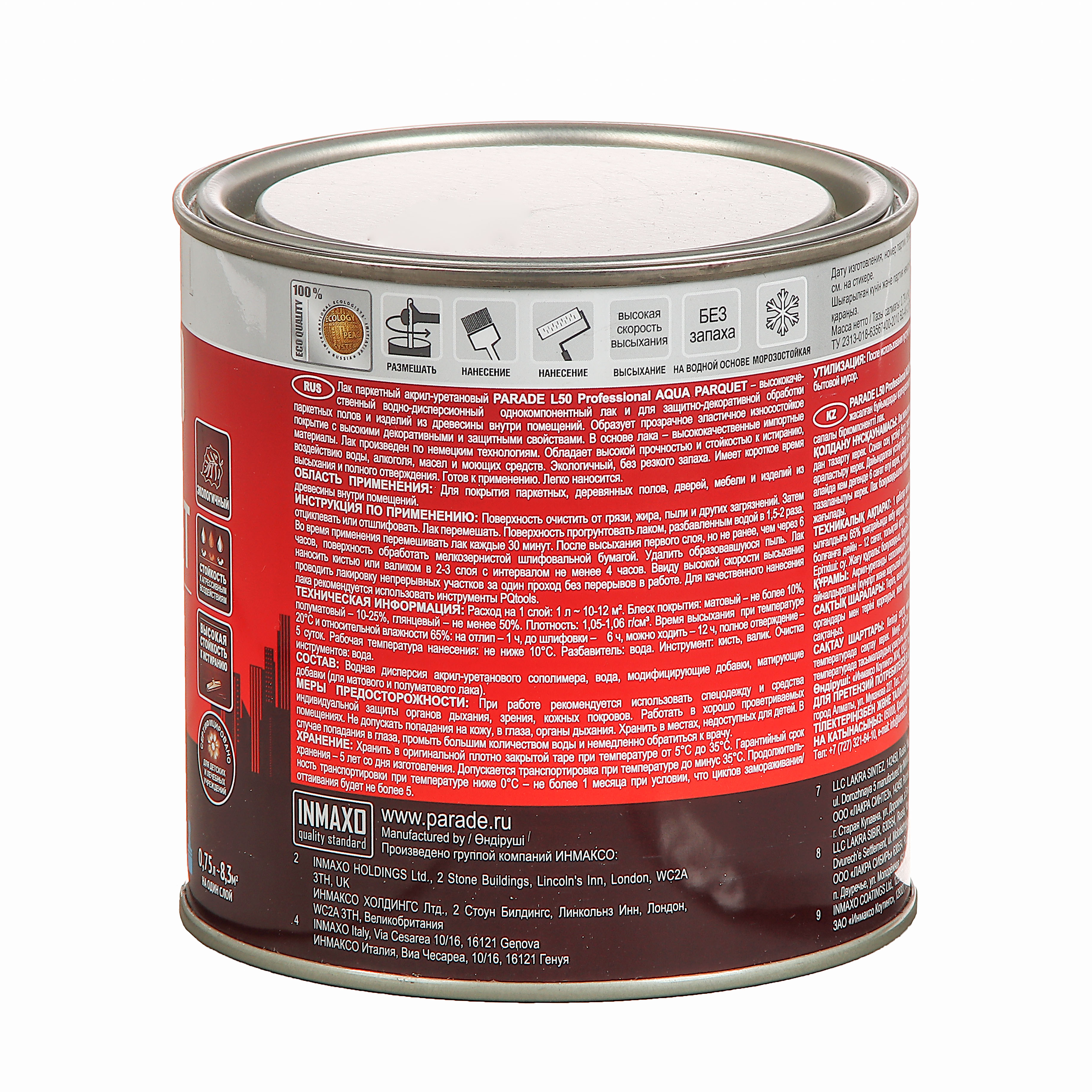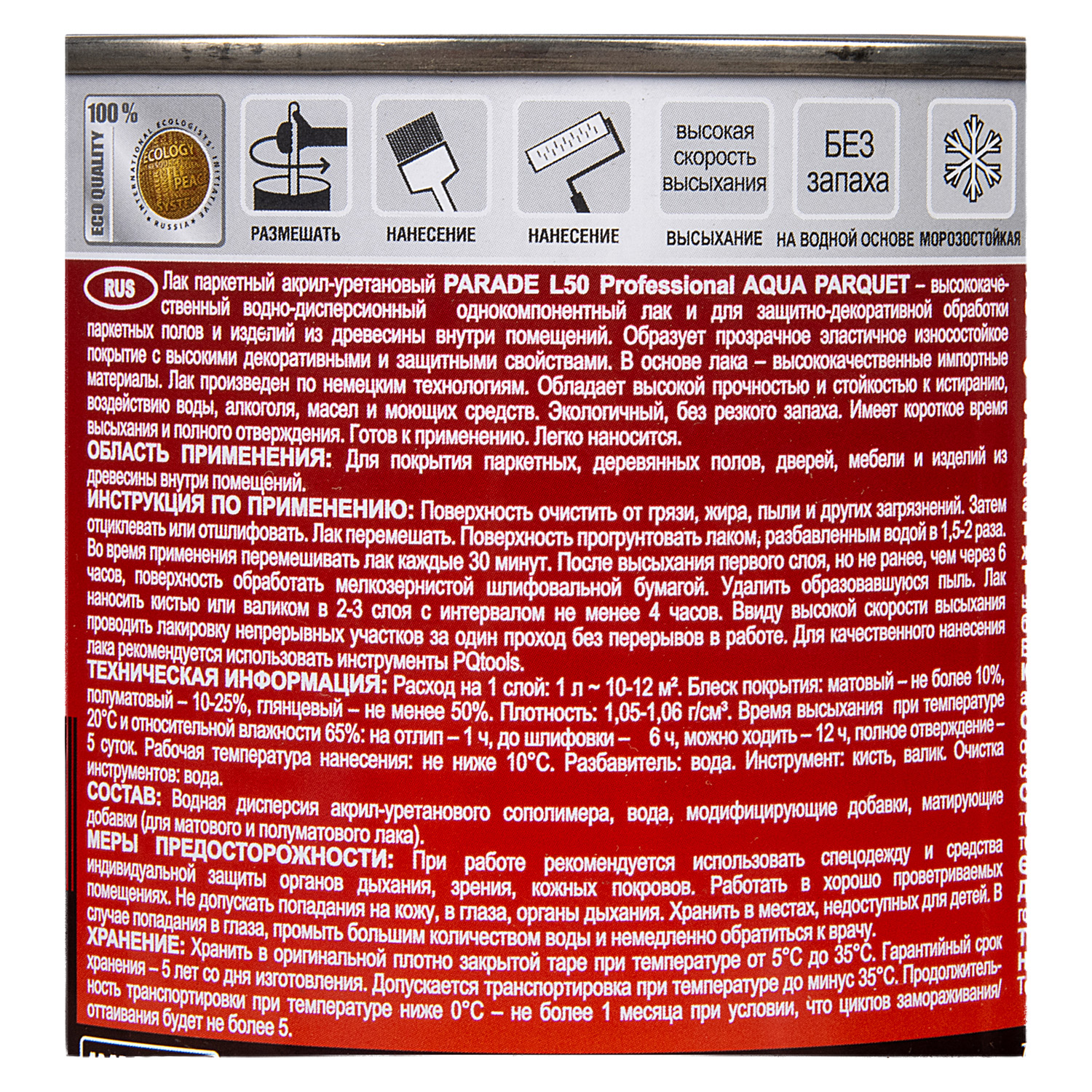 Лак акрил-уретановый паркетный глянцевый 0,75 л PARADE L-50 *1/6/432