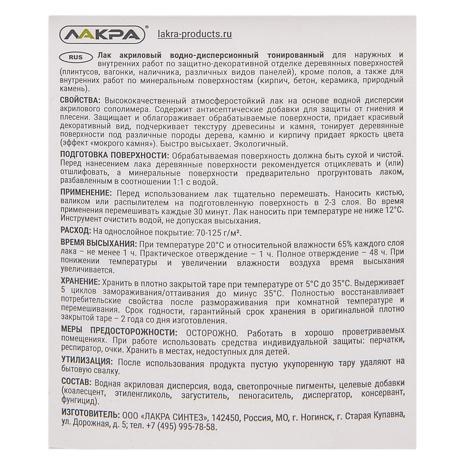 Высококачественный лак на основе водной акриловой дисперсии.