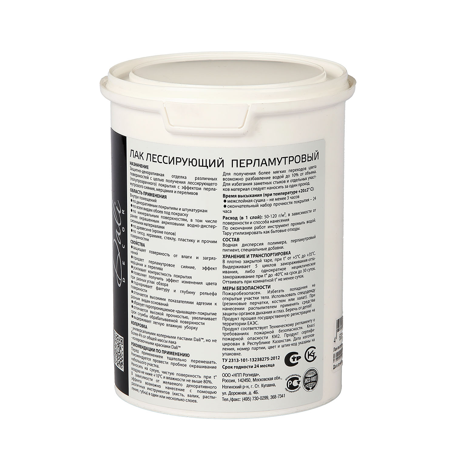 Лак акриловый для внутренних работ лессирующий серебро перламутровый 1 кг ДАЛИ-decor *1/6/384