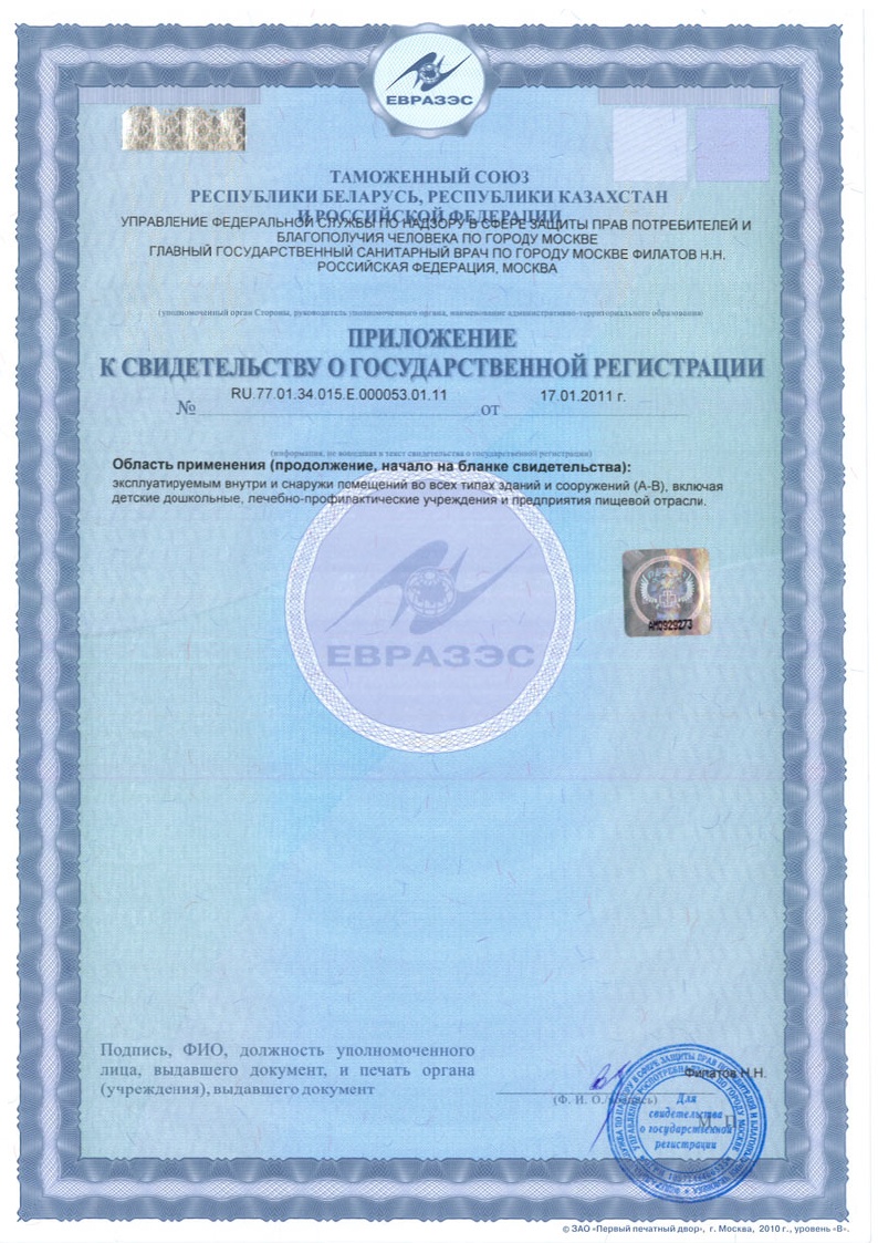 Степени блеска: матовый, полуматовый, глянцевый. Сертифицирована для применения в детских и лечебных учреждениях