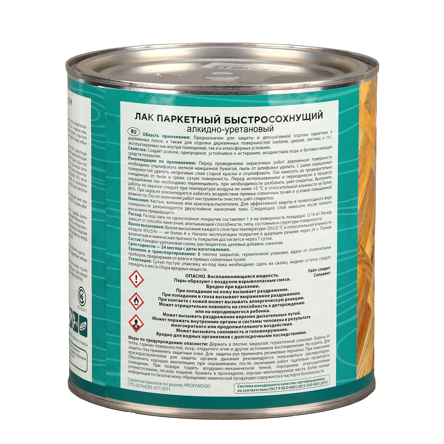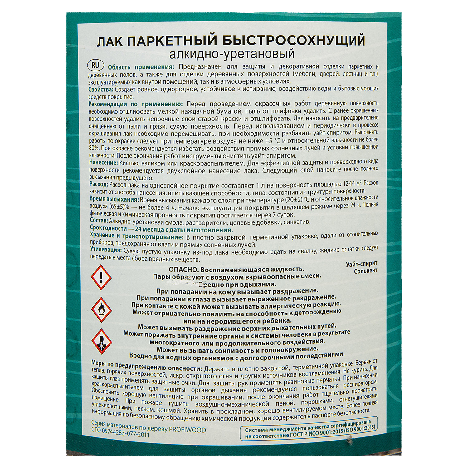 Лак алкидно-уретановый паркетный глянцевый 2,4 кг PROFIWOOD *1/6/180