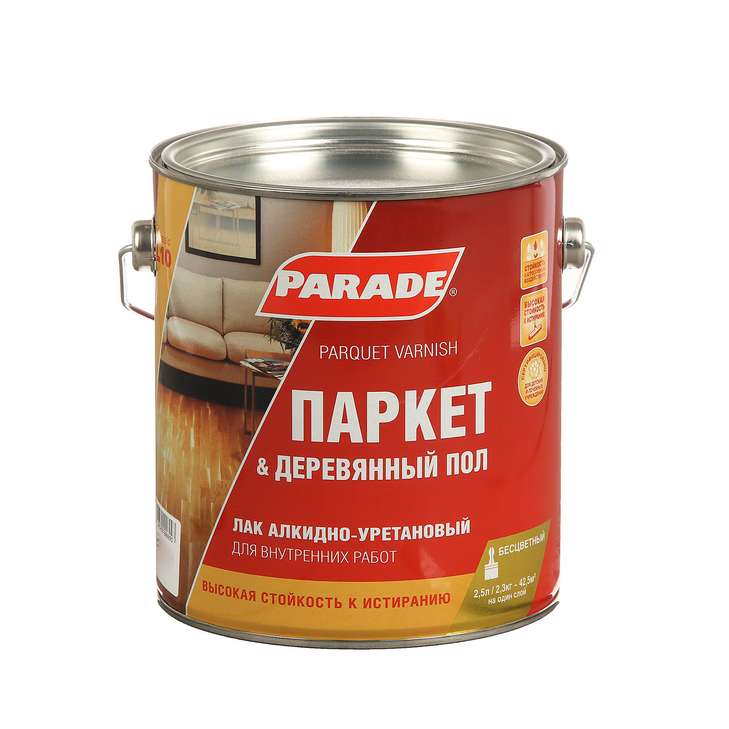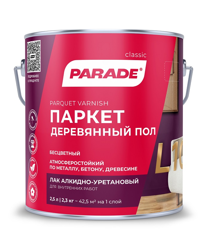 Лак алкидно-уретановый паркетный глянцевый 2,5 л PARADE L-10 *1/3/144