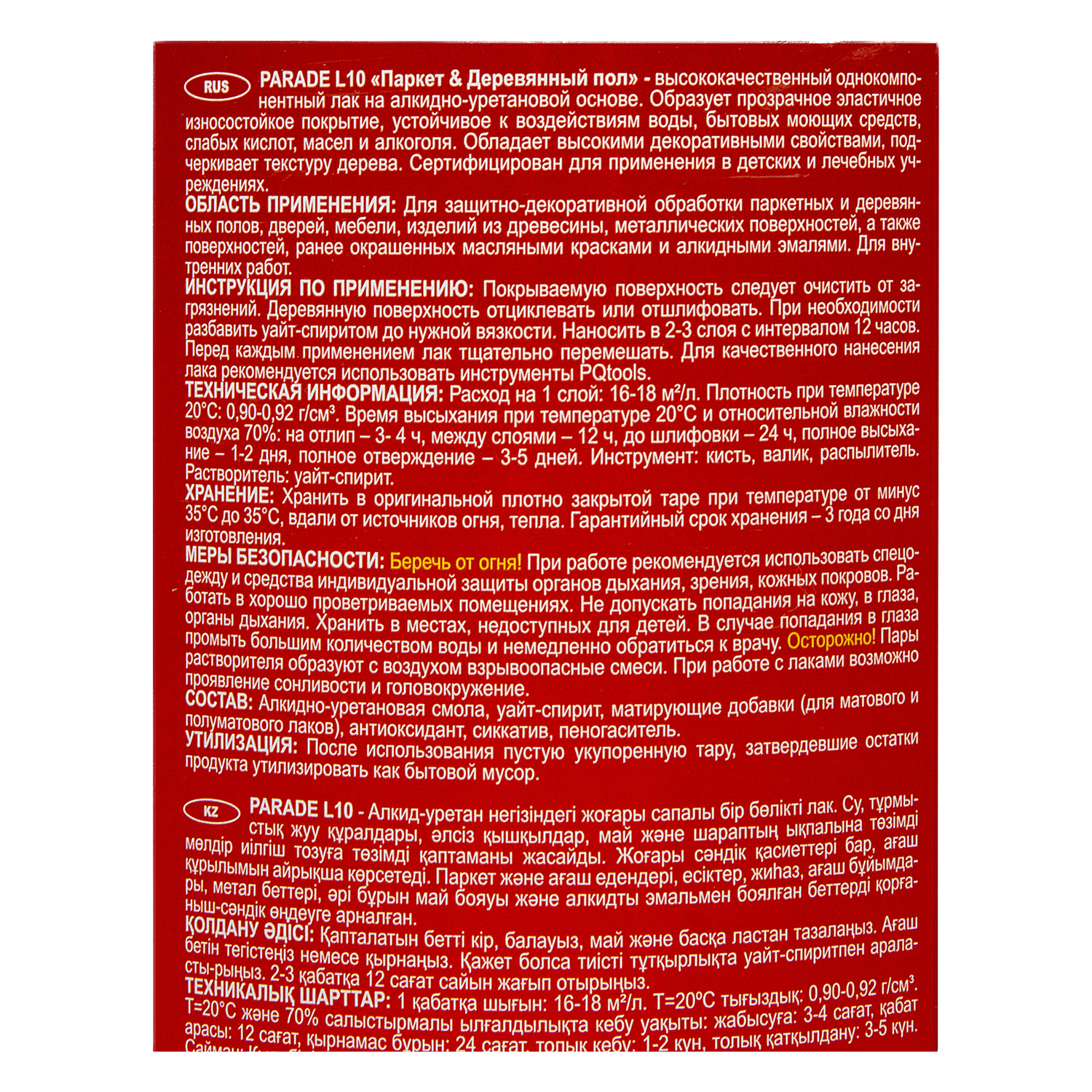 Лак алкидно-уретановый паркетный. Высокая стойкость к истиранию. Для внутренних работ.