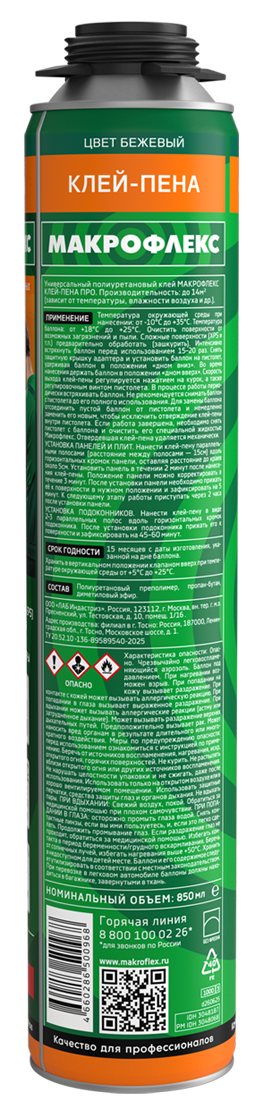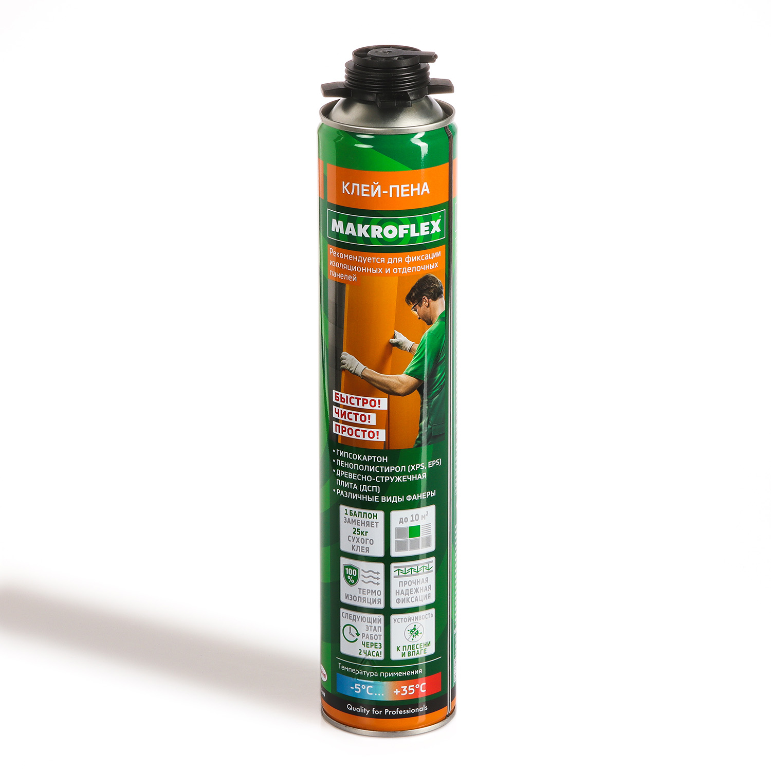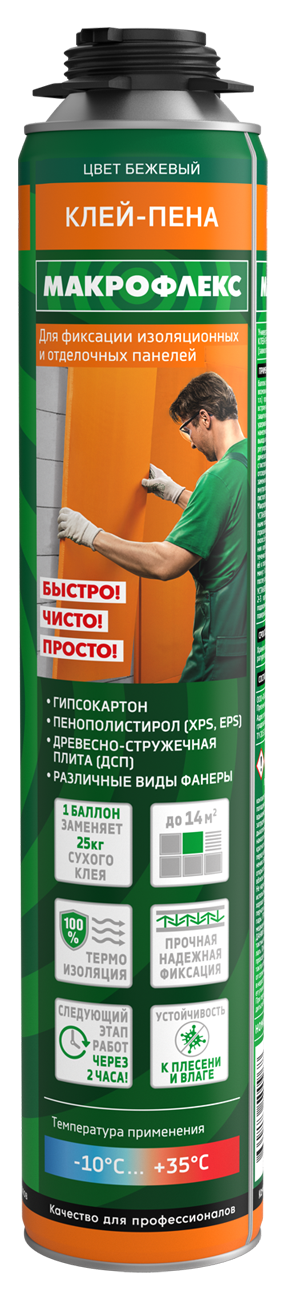 Макрофлекс Клей-пена Строительная профессиональная готовая к употреблению сверхэффективная полиуретановая клей-пена для фиксации панелей. Один баллон заменяет 25 кг строительного клея.