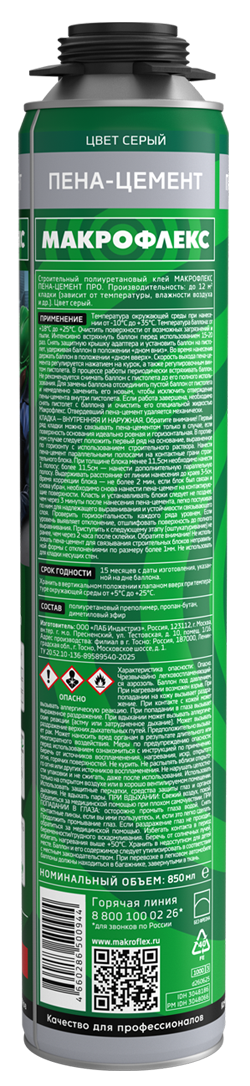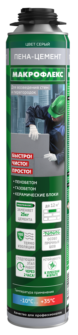 Макрофлекс Пена-цемент ПРО – это готовый к употреблению твердеющий под