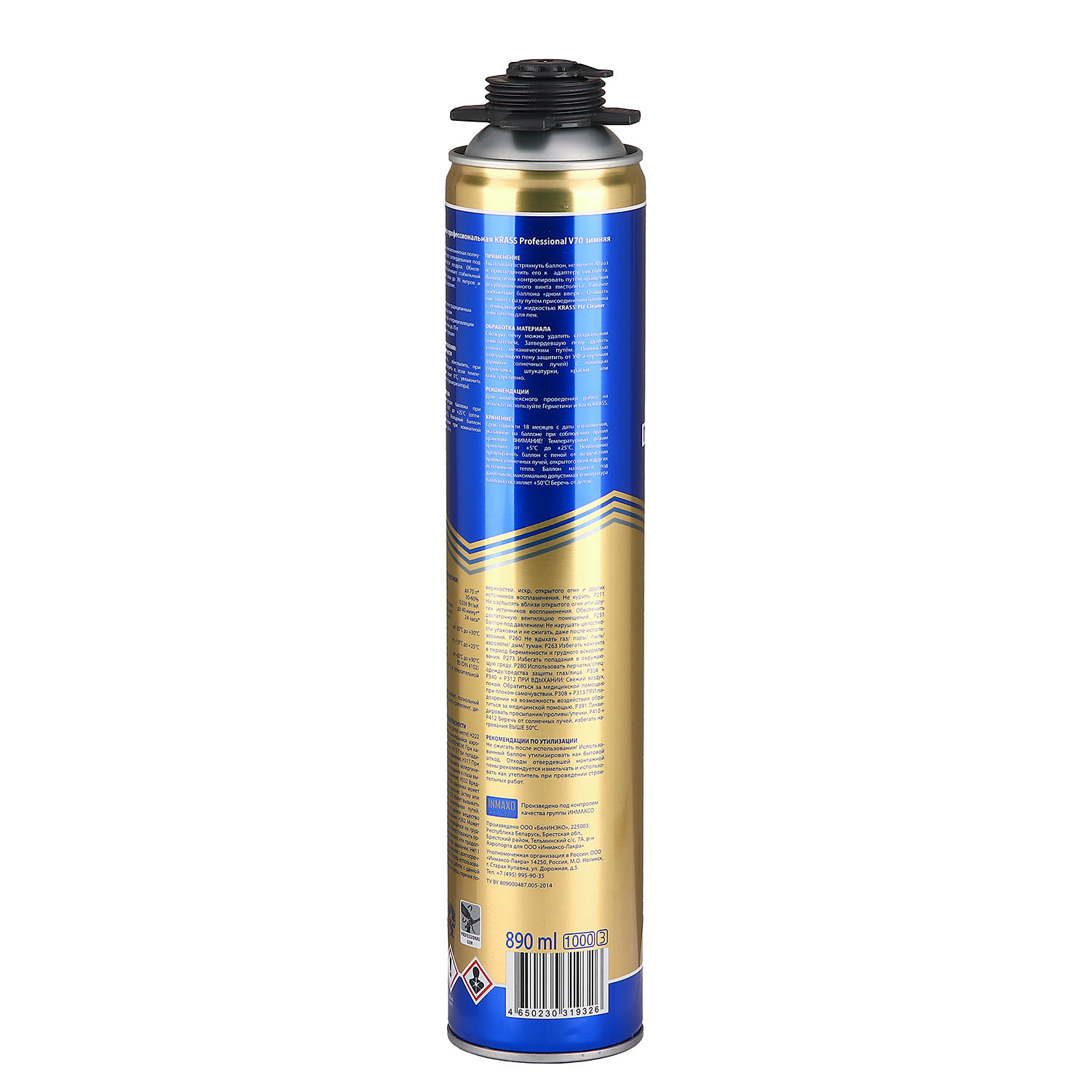 нагревания свыше +50°С. Хранить в вертикальном положении (клапаном вверх)