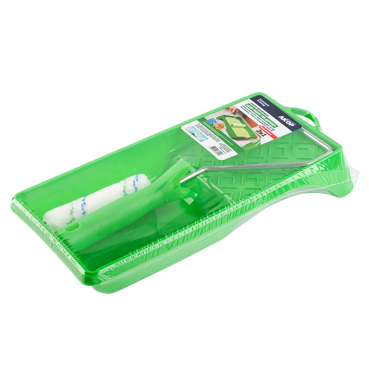 Малярный набор для работ по дереву. Он используется для нанесения антисептиков, пропиток, грунтовок, лазури, защитных составов и прочих невязких материалов. Шубка из микроволокна отличается высоким коэффициентом впитываемости и отдачи краски, это обеспечивает ее равномерное нанесение на древесину различной фактуры.
