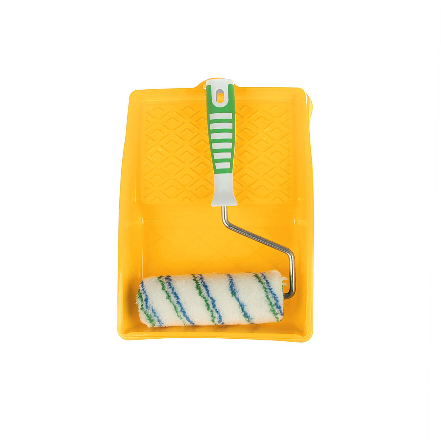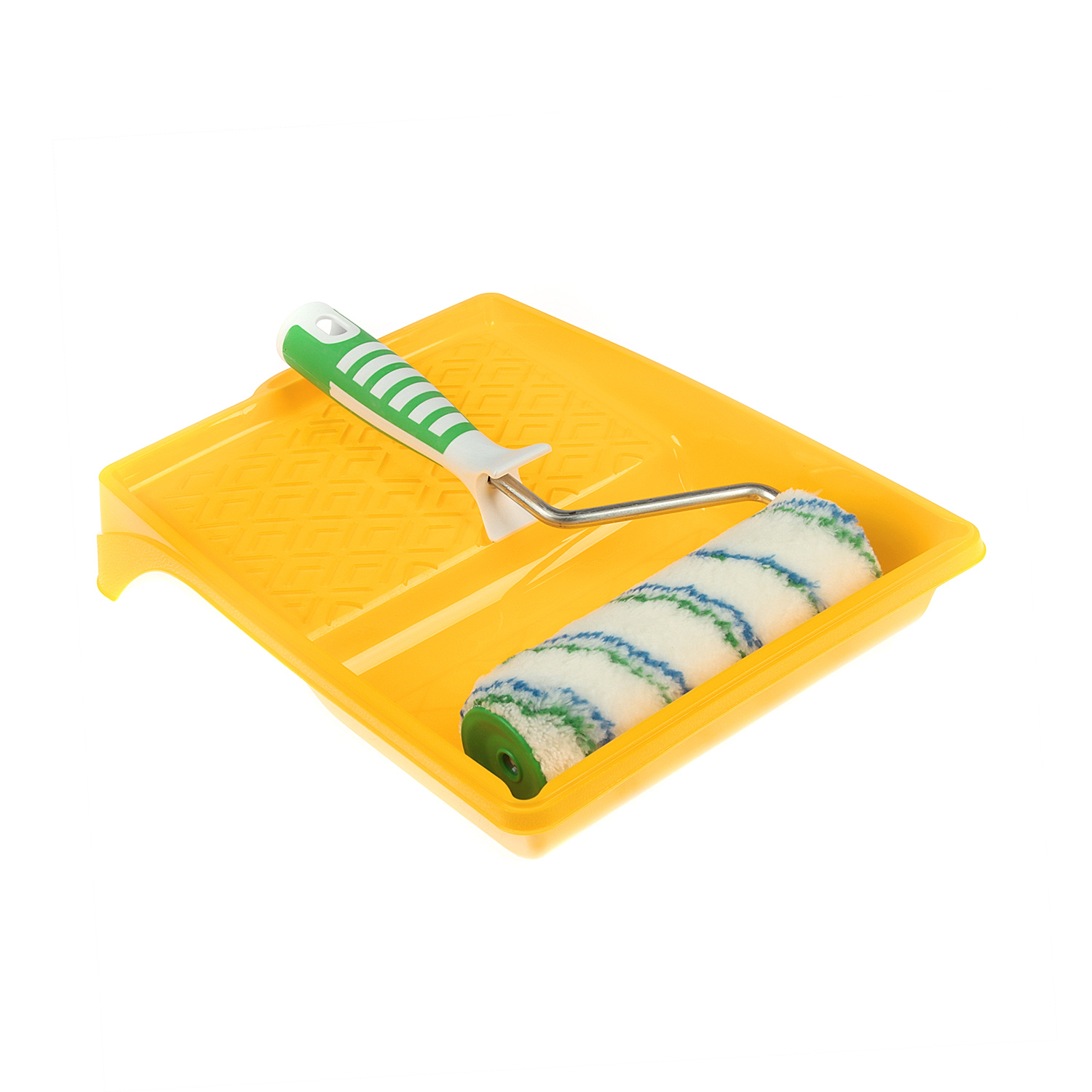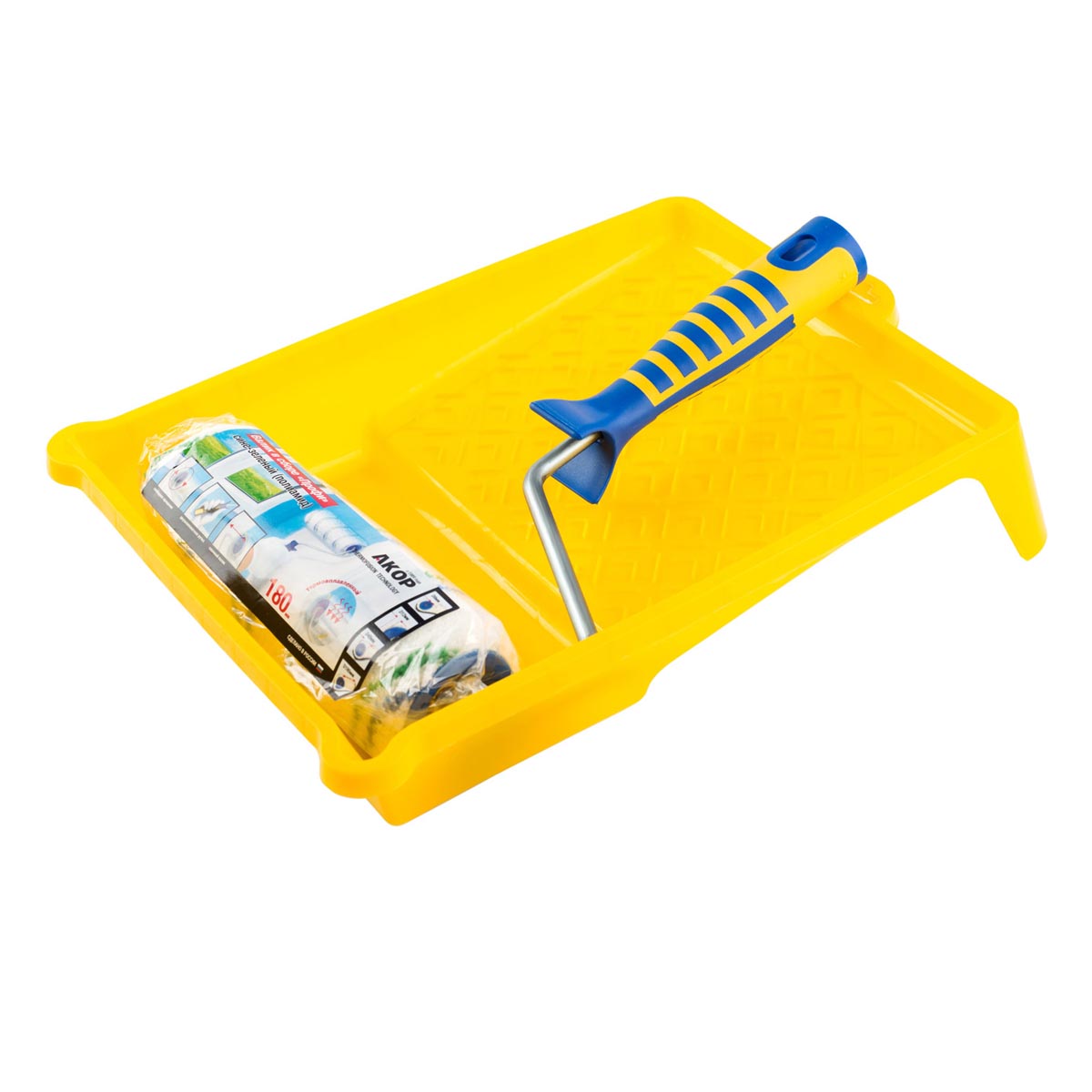 Малярный набор универсальный. Валик подходят для нанесения всех ЛКМ, подходит для любой агрессивной среды. Шубка из полиамида хорошо удерживает форму, имеет повышенную износостойкость, высокий коэффициент впитываемости и отдачи краски, а ее волокна не остаются на поверхности, что гарантирует высокое качество окрашивания. Бюгель с эргономичной рукояткой обеспечивает удобство работы и снижает усталость в руках при длительной работе. Кювета выполнена из пластмассы высокого качества, поэтому устойчива к механическим нагрузкам. Благодаря специальной конструкции кюветы излишки краски стекают в ванночку, а не скапливаются на раскаточной доске, это обеспечивает экономный расход материалов.