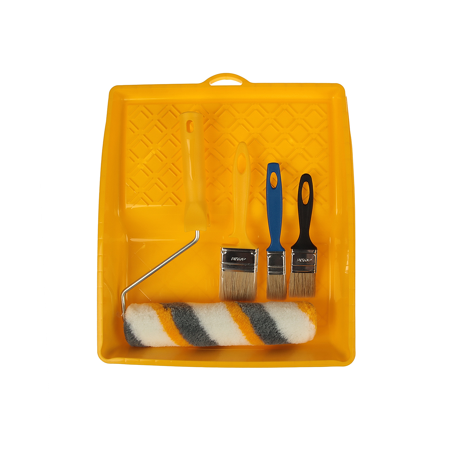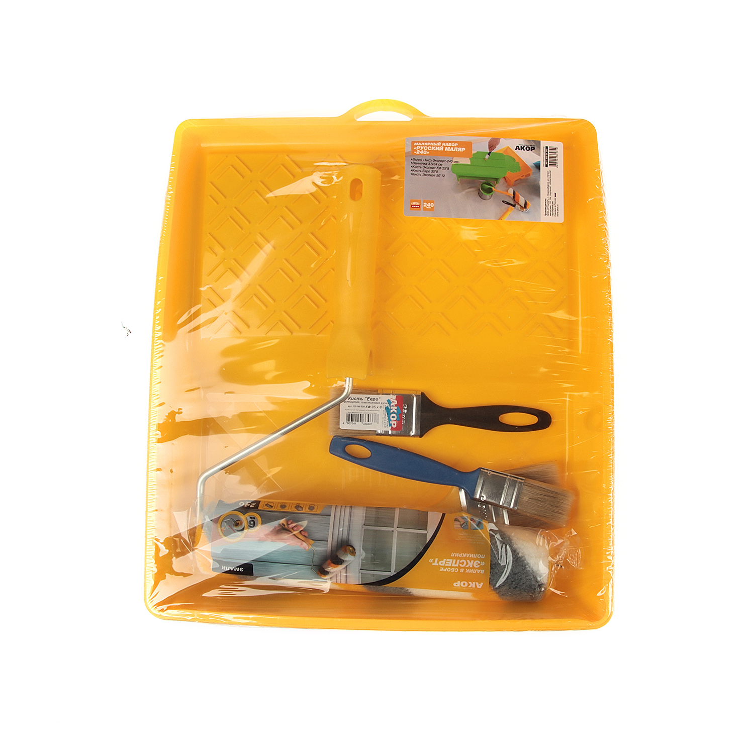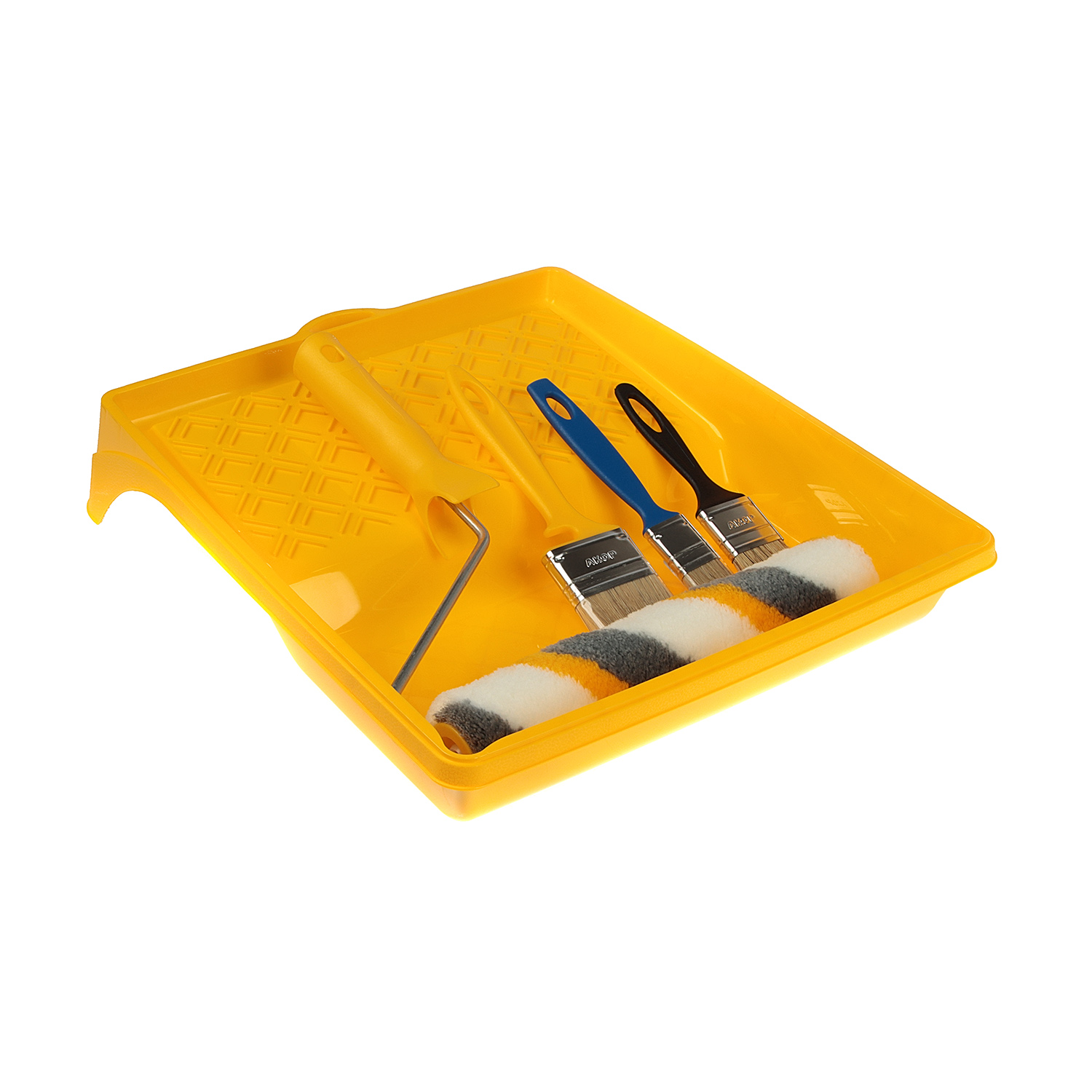 Малярный набор универсальный. Валик и кисти подходят для нанесения ЛКМ: эмали,краски на водной основе,клеи,грунтовки. Бюгель с эргономичной рукояткой обеспечивает удобство работы и снижает усталость в руках при длительной работе. Кювета выполнена из пластмассы высокого качества, поэтому устойчива к механическим нагрузкам. Благодаря специальной конструкции кюветы излишки краски стекают в ванночку, а не скапливаются на раскаточной доске, это обеспечивает экономный расход материалов.
