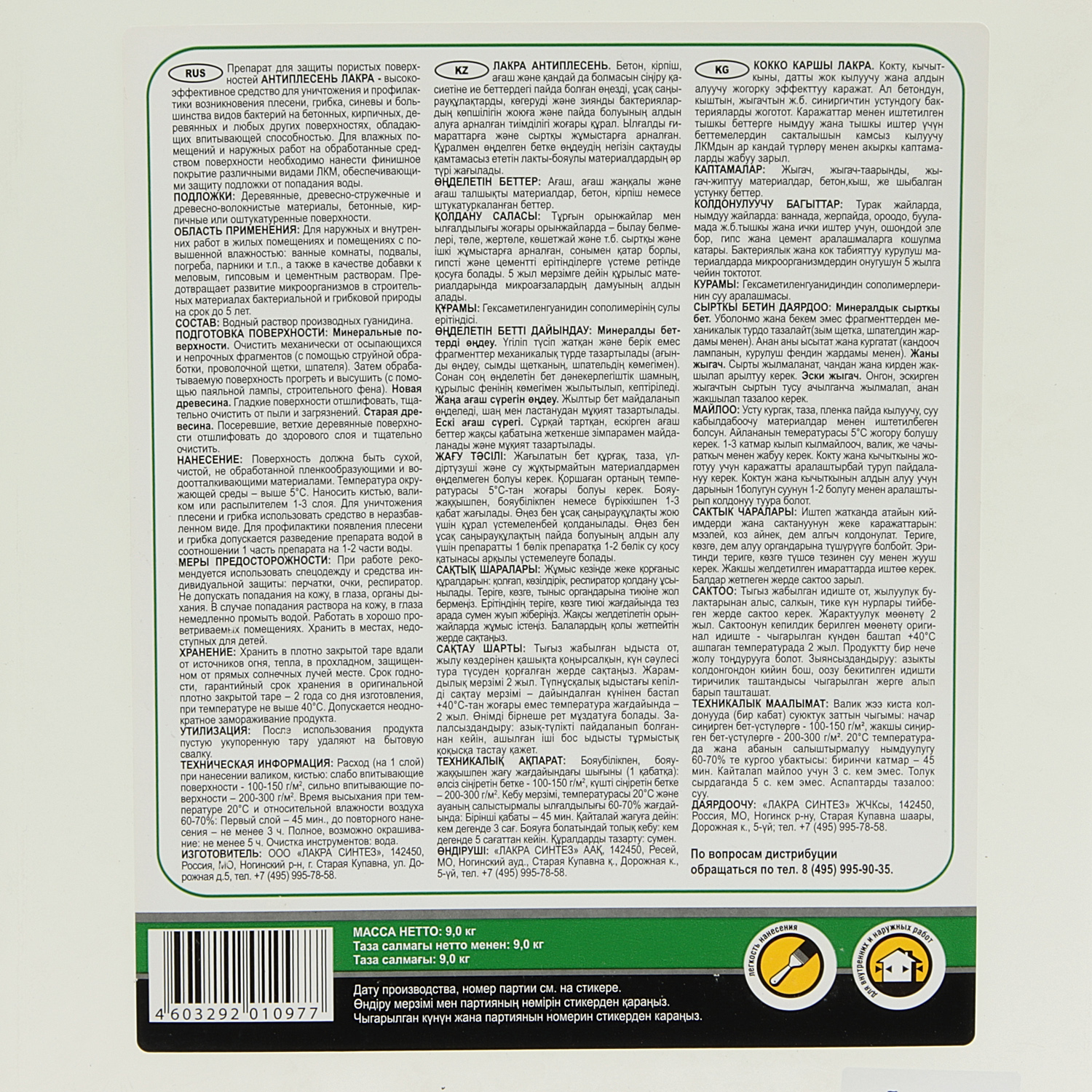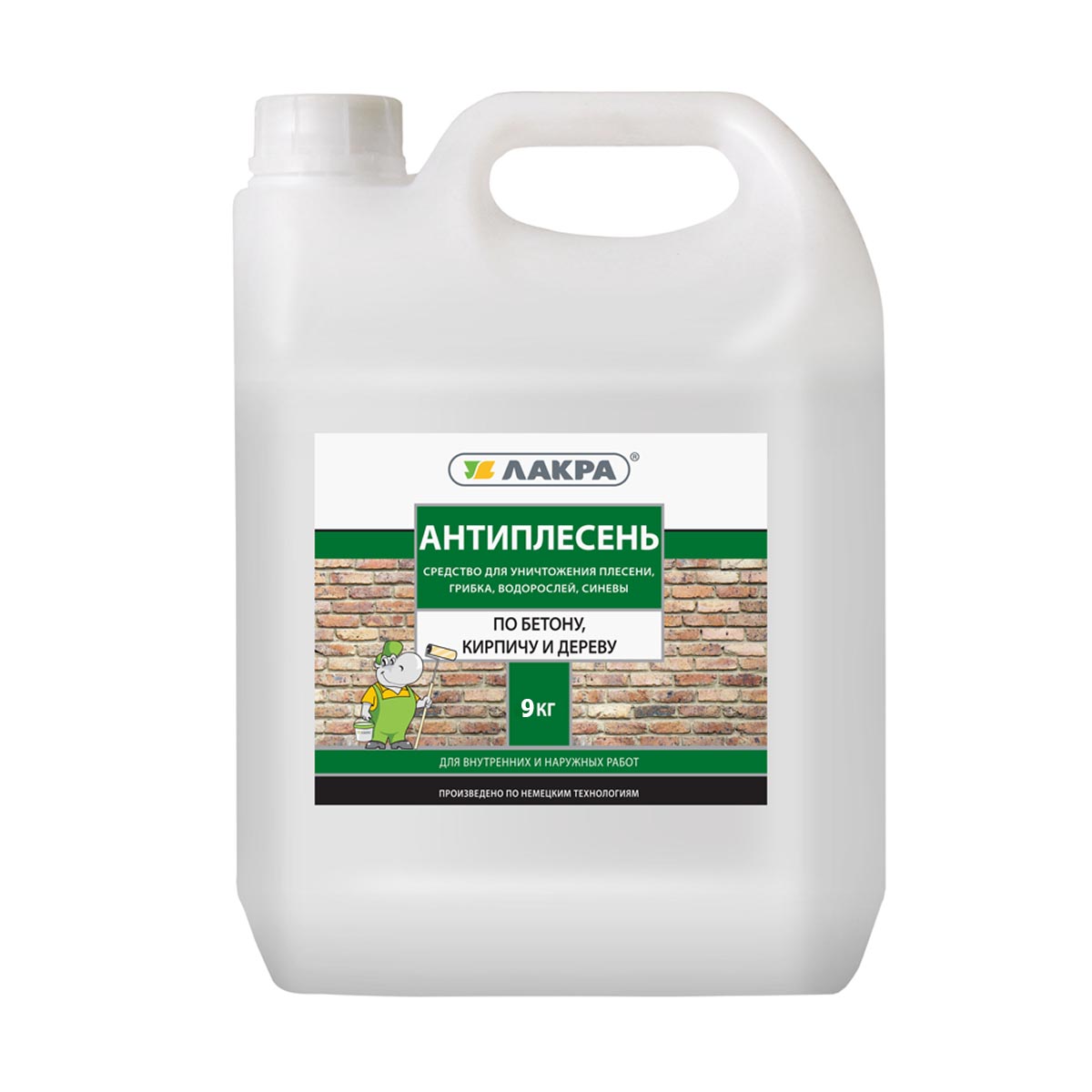 Высокоэффективное средство для уничтожения и профилактики возникновения плесени, грибка, синевы и большинства видов бактерий на бетонных, кирпичных, деревянных и любых других поверхностях, обладающих впитывающей способностью.