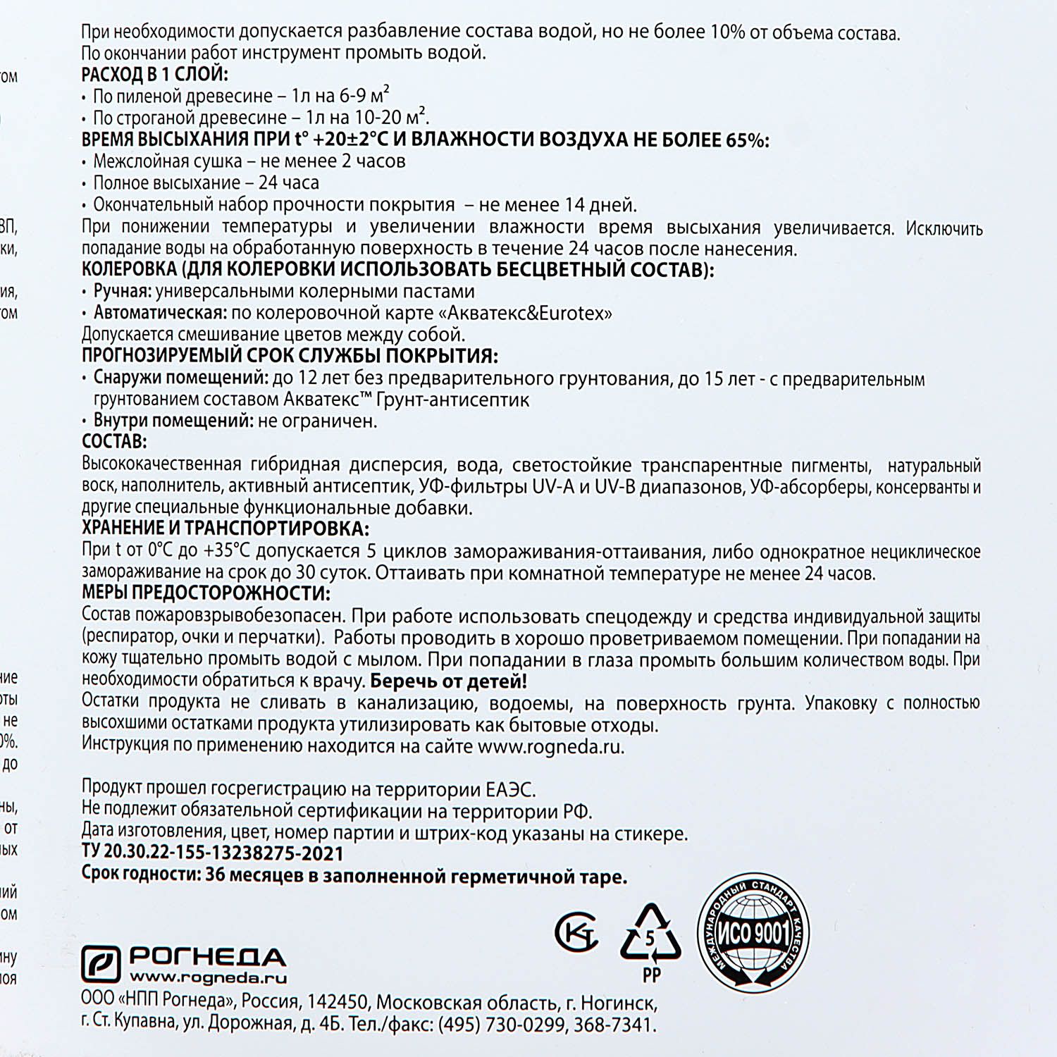 Состав    высококачественная гибридная дисперсия, вода, светостойкие транспарентные пигменты, натуральный воск, наполнитель, активный антисептик, Уф-фильтры UV-A и UV-B диапазонов, УФ-абсорберы, консерванты и другие специальные функциональные добавки