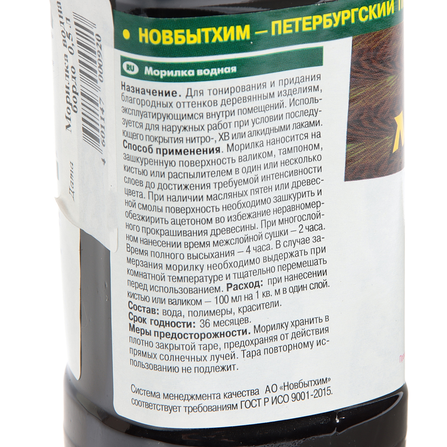 Морилка водная бордо 0,5 л Новбытхим *12/672