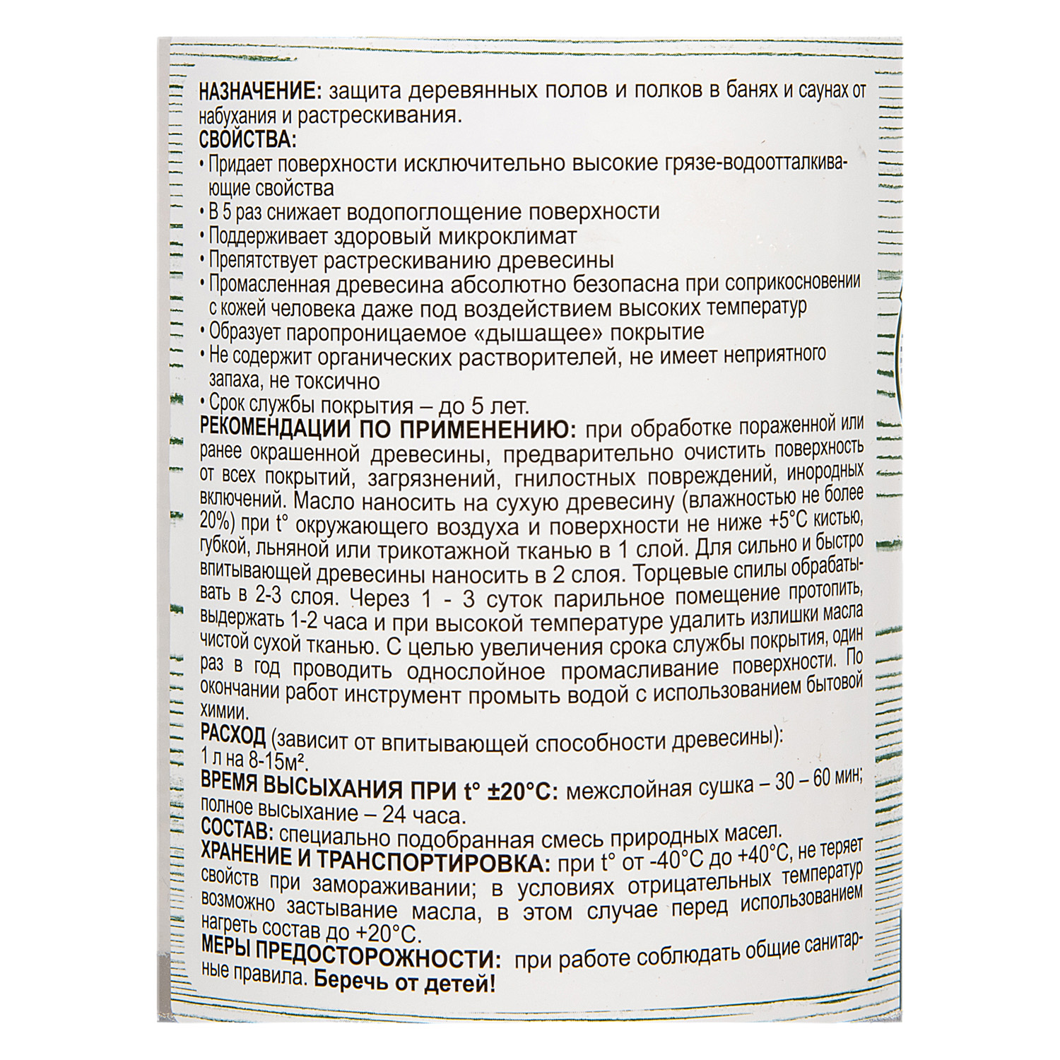 Назначение Для обработки деревянных поверхностей в банях и саунах