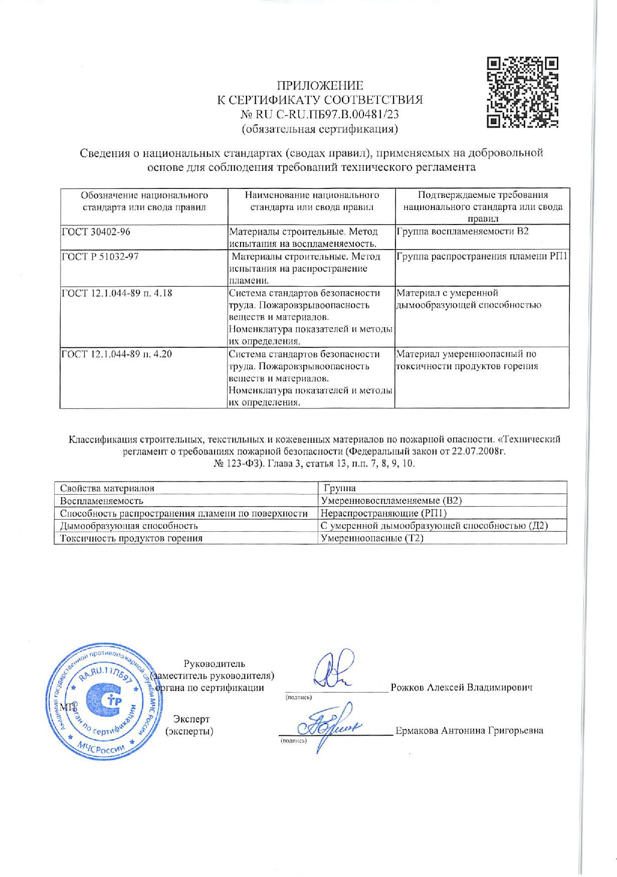 Класс пожарной опасности материала ФЗ-123 КМ2
