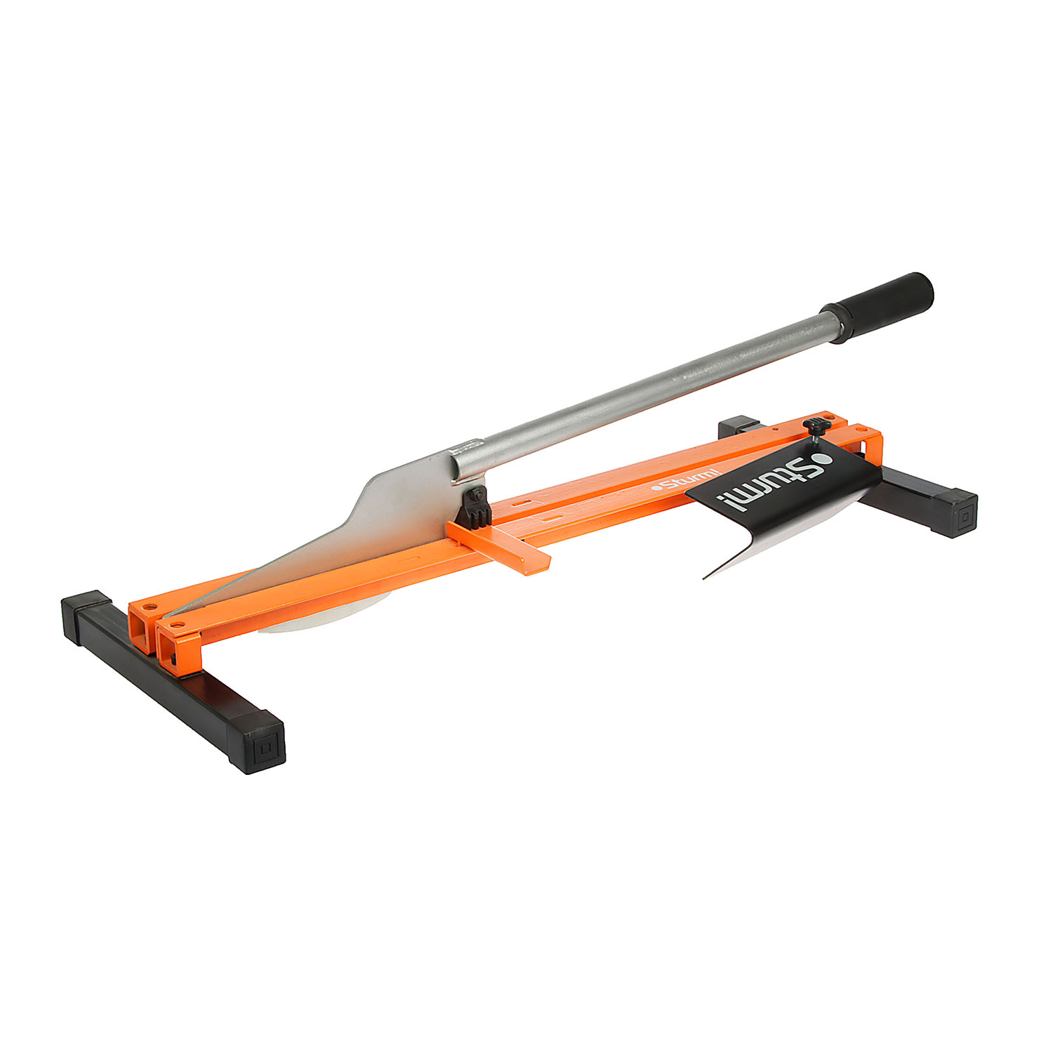 Корпус изготовлен из прочного профилированного металла с износостойким покрытием. Регулируемый упор на станине препятствует скольжению материала во время работы. Круглая ручка оснащена полимерной мягкой накладкой для удобного удержания одной рукой. Длина лезвия — 210 мм, глубина реза до 10 мм. Комплектуется подставкой для ламината. Специальный упор на ручке защищает от резкого удара ручкой об станину или материал.
