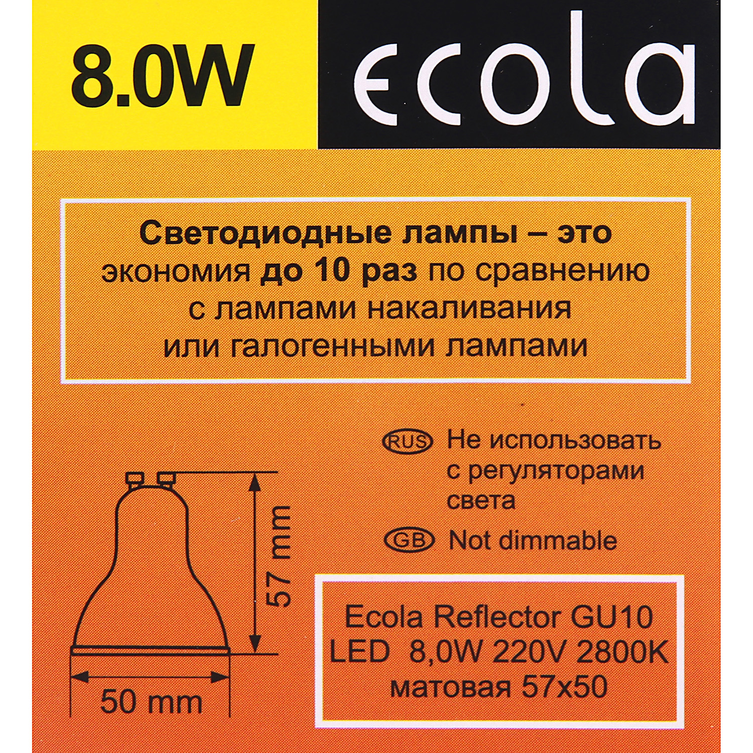 Лампа светодиодная 8,0W-220 GU10 рефлектор 2.8K матовая Ecola 57x50 G1LW80ELC *10/100