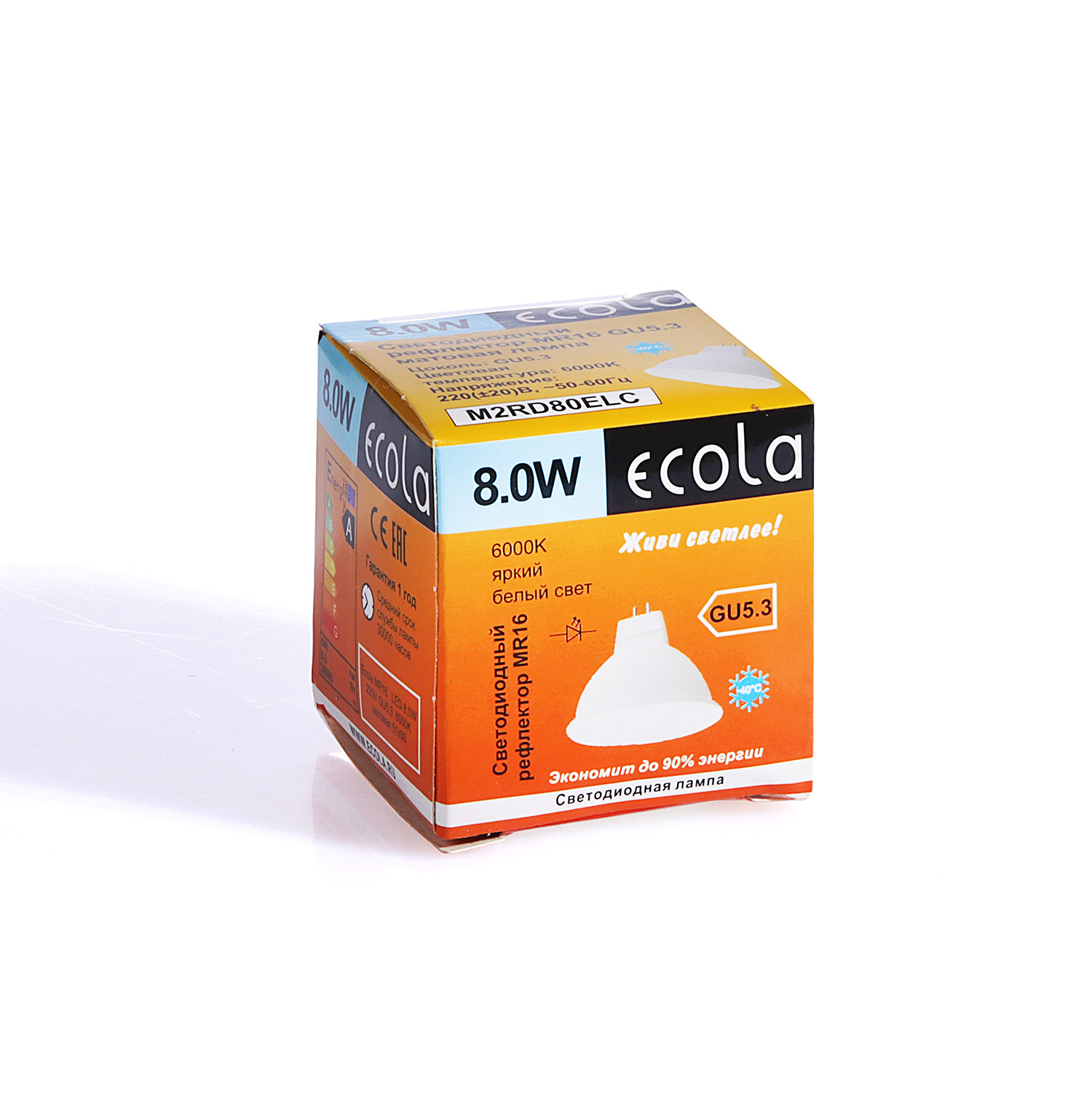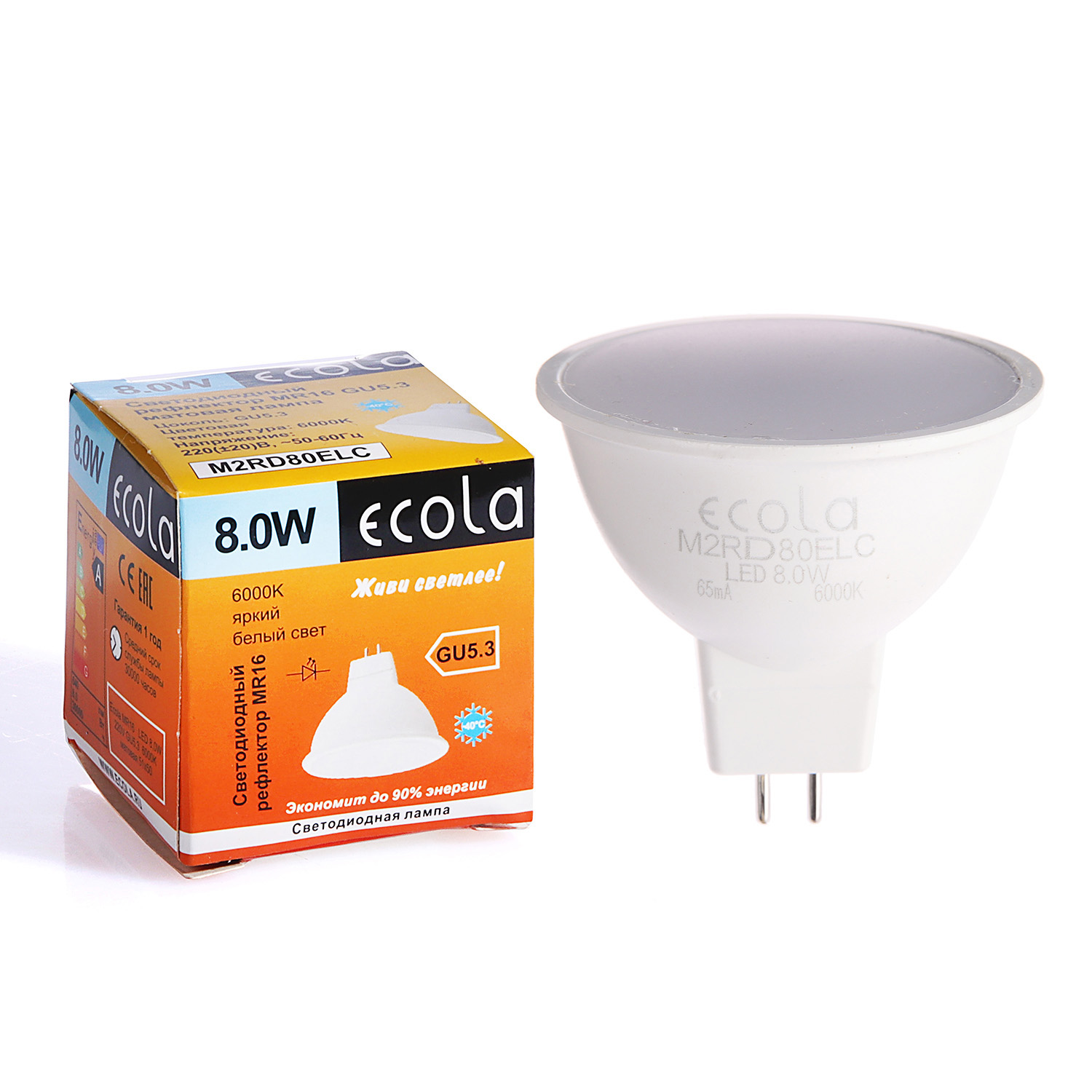 Лампа светодиодная 8,0W-220V GU5.3 MR16 6.5K холодный матовая Ecola 51x50 M2RD80ELC *10/100