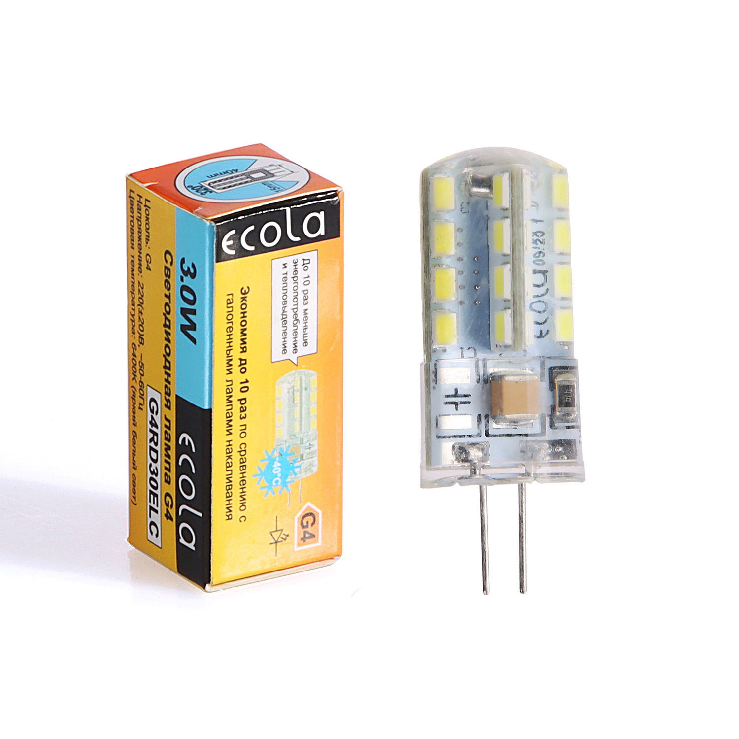 Лампа светодиодная капсульная 3,0W-220V G4 6.5K холодный Ecola 40x15 G4RD30ELC *10/100