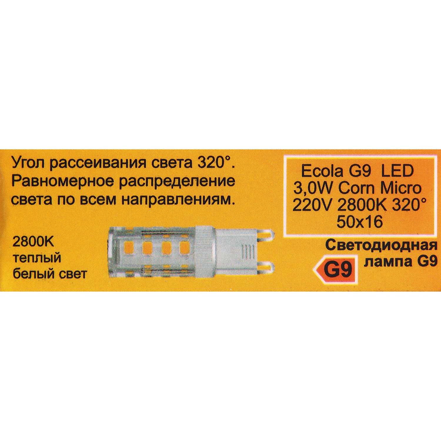 Лампа светодиодная капсульная 3,0W-220V G9 2.7K теплый Ecola 50x16 G9RW30ELC *10/100