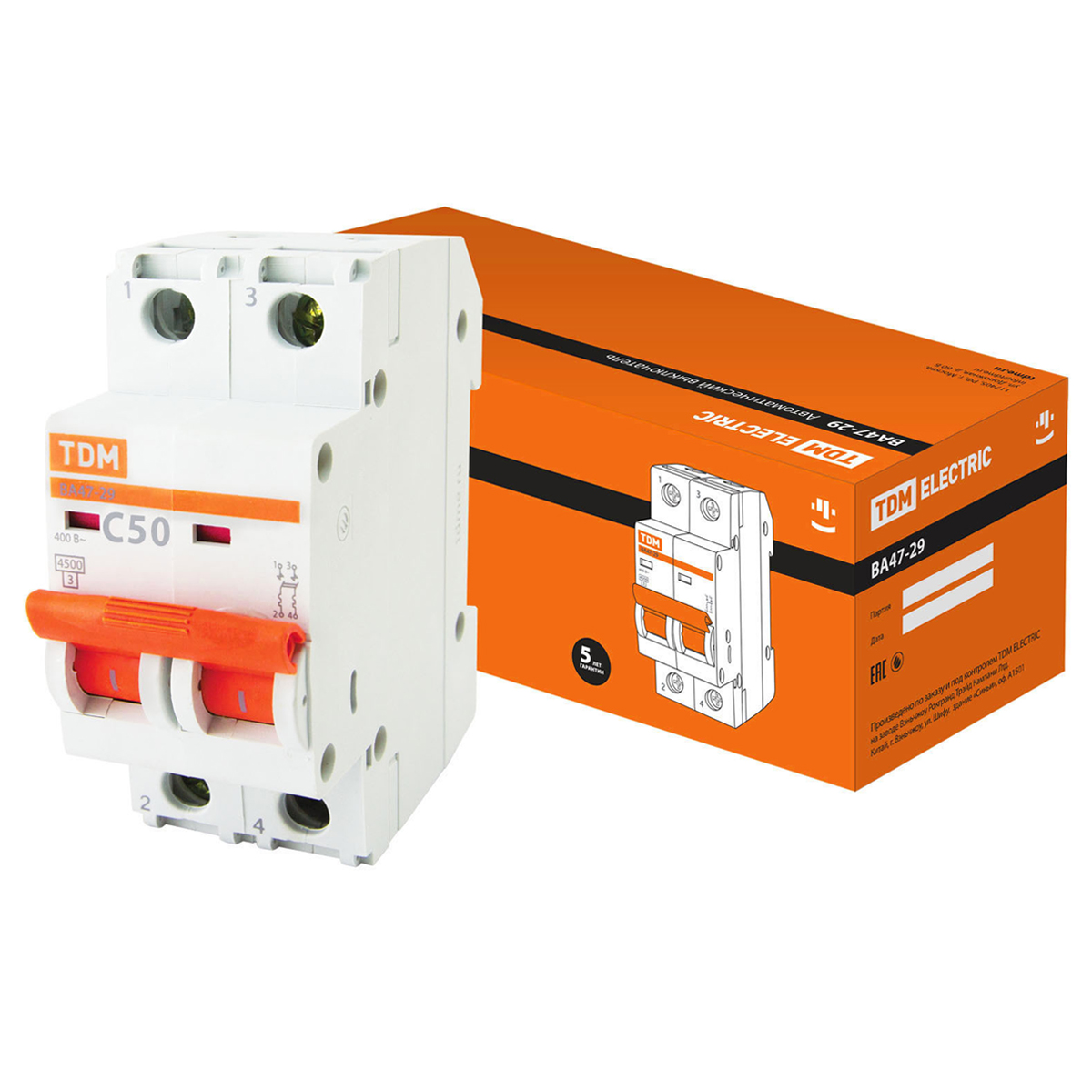 Авт.выкл. TDM ВА 47-29 50А/2П SQ0206-0098 *6/60