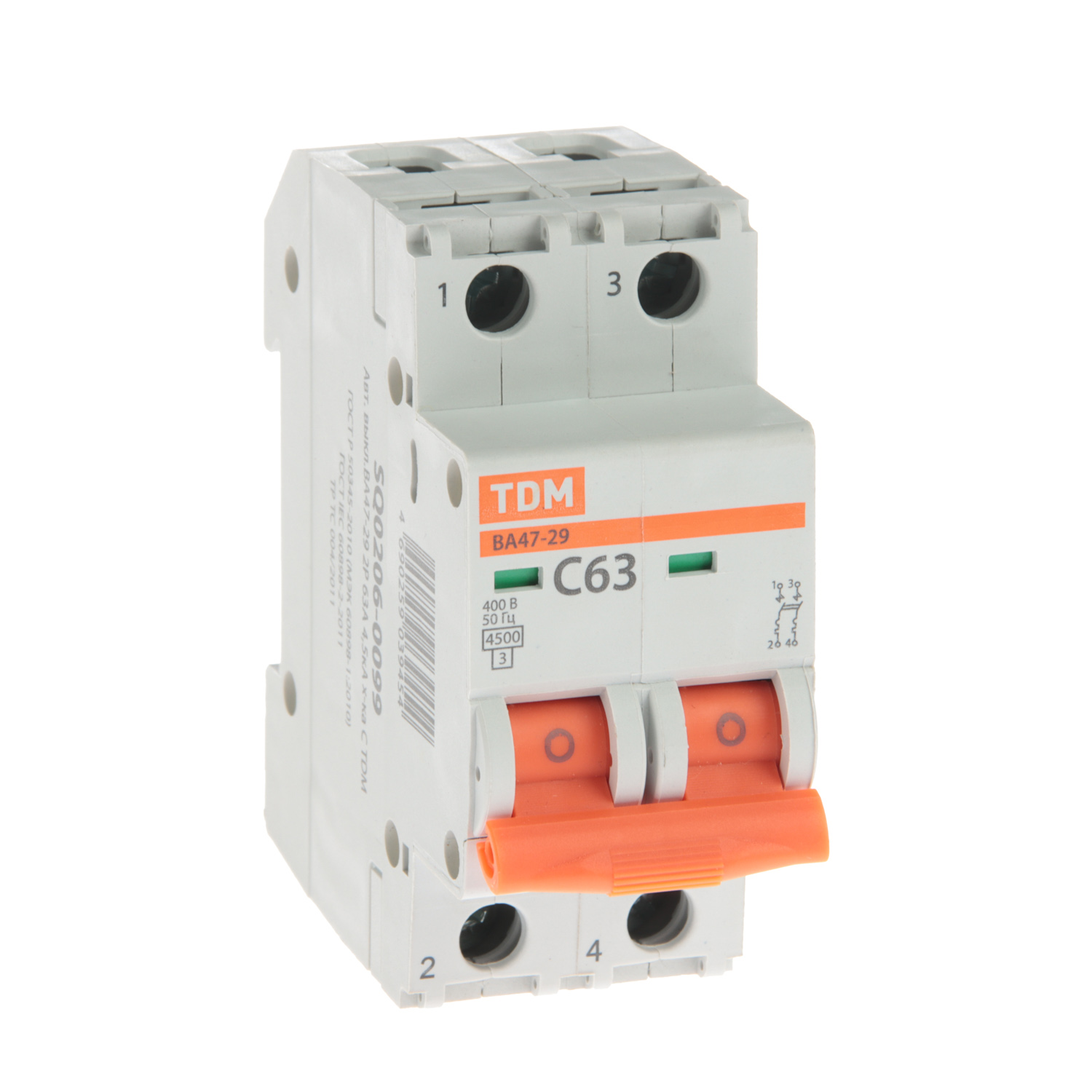 Авт.выкл. TDM ВА 47-29 63А/2П SQ0206-0099 *6/60
