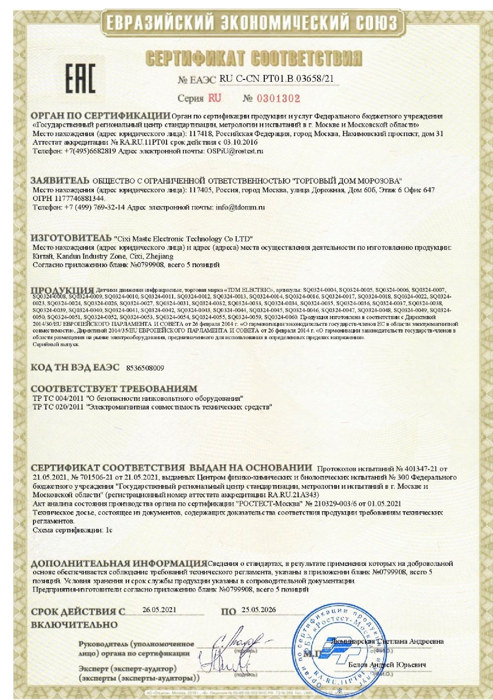 Сертифицированный датчик передвижения SQ0324-0013 торговой фирмы TDM традиционно применяется для обнаружения передвижений и присутствия человека в пределах зоны работы (12 м);