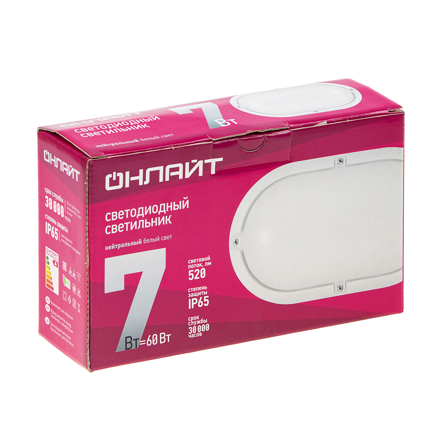 Светильник накладной светодиодный 7Вт 4.0K 520Лм IP65 овал белый OBL ОНЛАЙТ 71687 *1/32