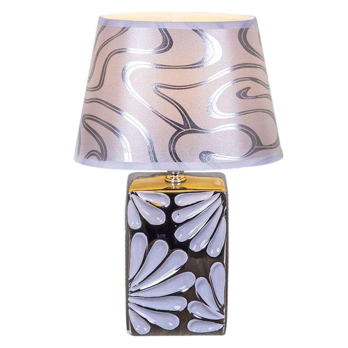 Лампа настольная -01842-0.7-01-материал основания- керамика, материал плафона-текстиль, напряжение 220V, потребляемая мощность, Вт 40W, цвет основания -белый хром, цвет плафона-белый хром, цоколь лампы Е14.
