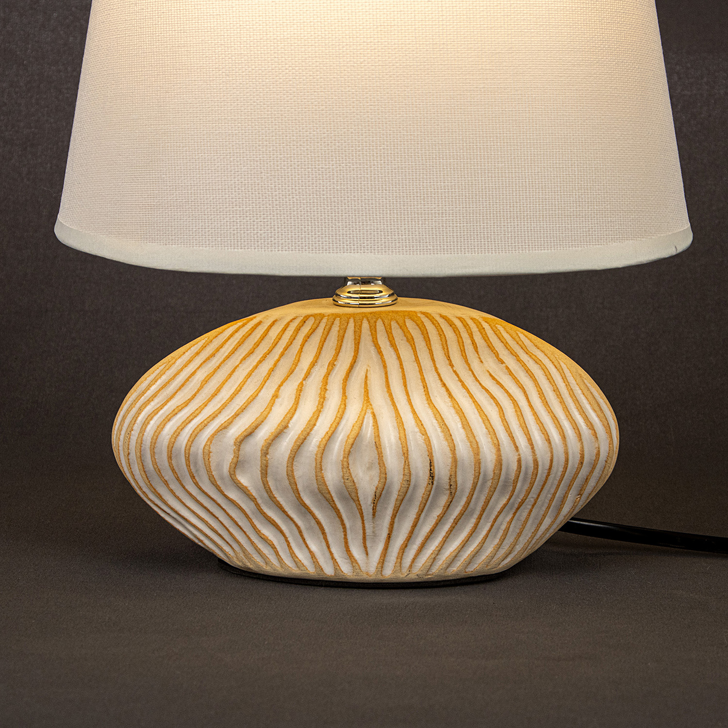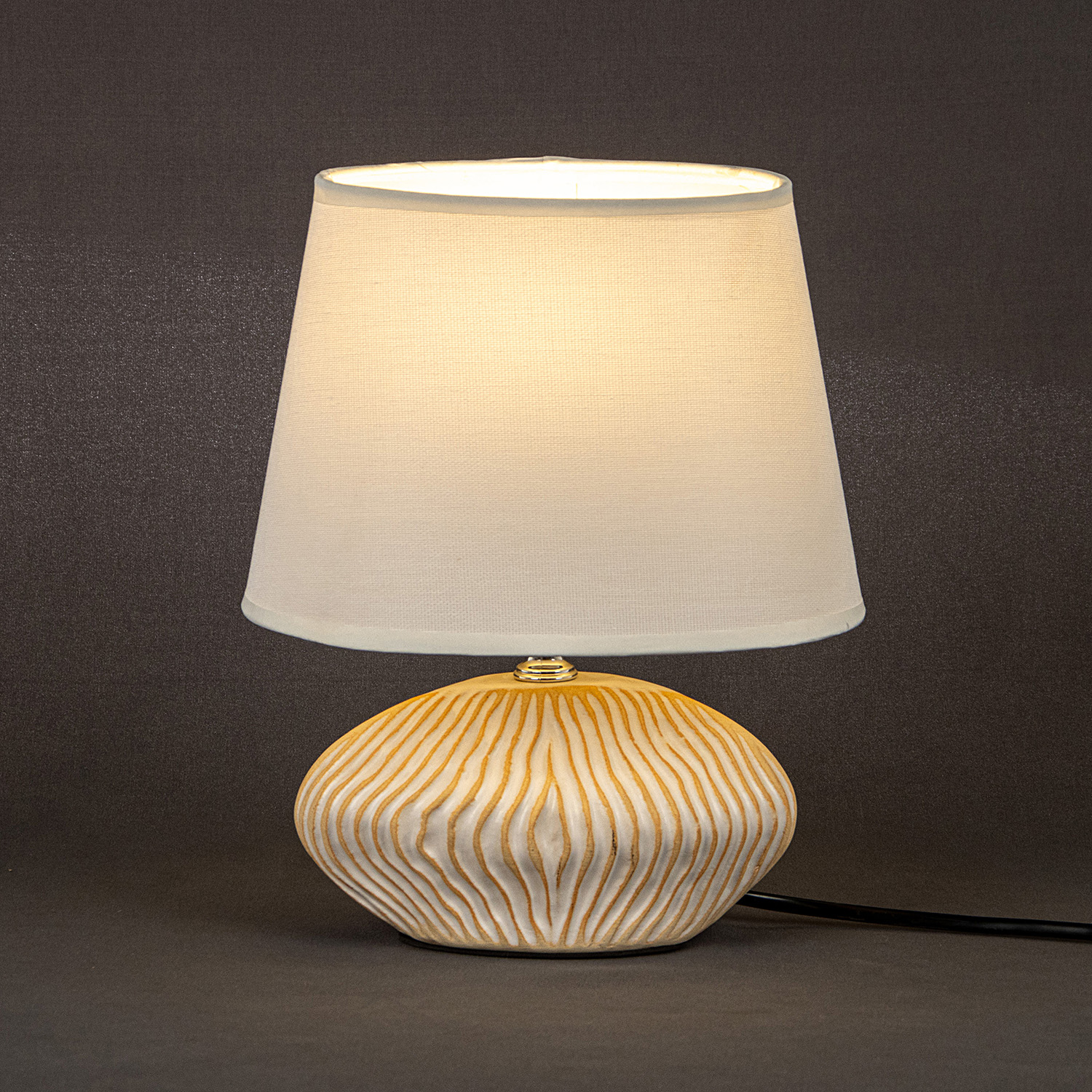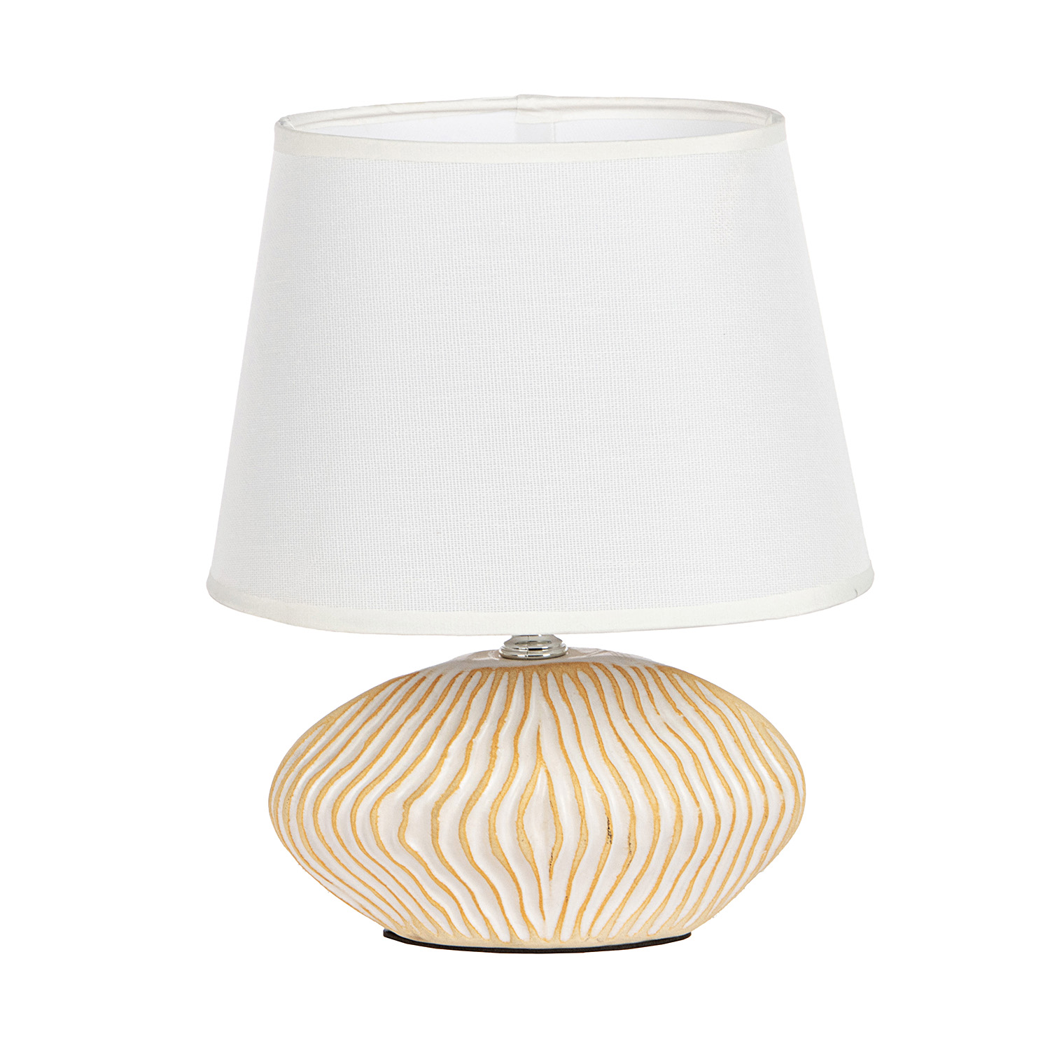 Лампа настольная -01882-0.7-01 -материал основания- керамика, материал плафона-текстиль, напряжение 220V, потребляемая мощность, Вт 40W, цвет основания -белый/золото, цвет плафона-белый, цоколь лампы Е14.