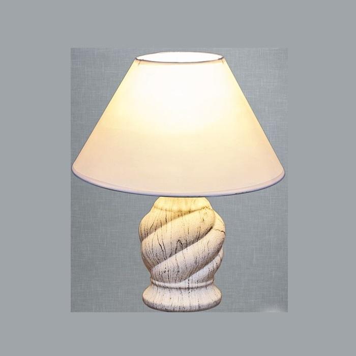 вид-светильник с абажуром, стиль-классика, высота изделия, 320мм, диаметр изделия, 240мм, материал основания-керамика, цвет основания белый, материал плафона-текстиль, цвет плафона-светлый, степень защиты IP20, Макс. площадь помещения, 1 м2.