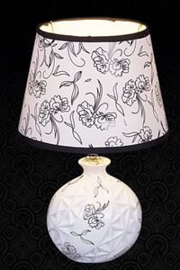 Напряжение- 220V. Потребляемая мощность- 60W. Цвет основания белый/черный. Цвет плафона белый/рисунок. Цоколь лампы E14.