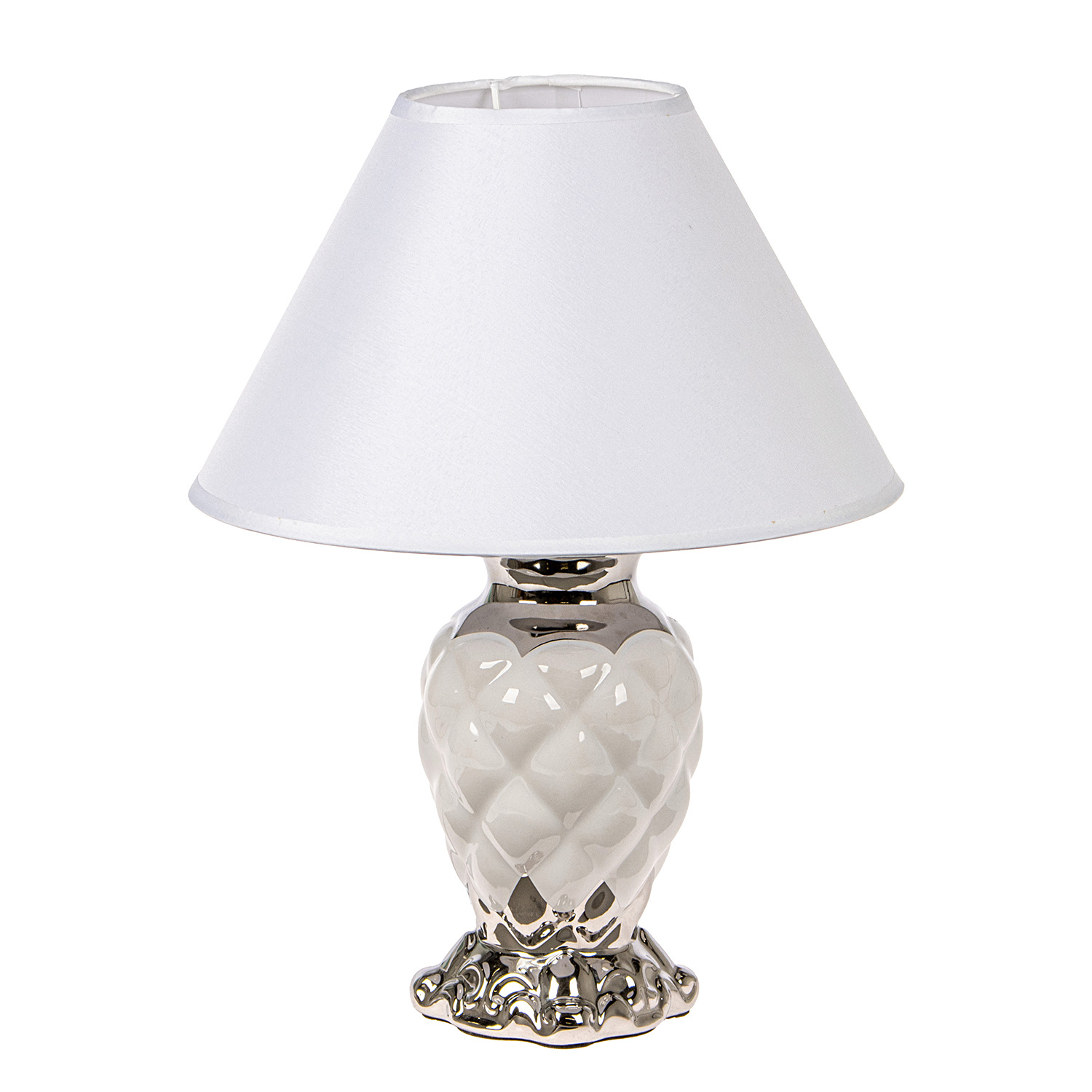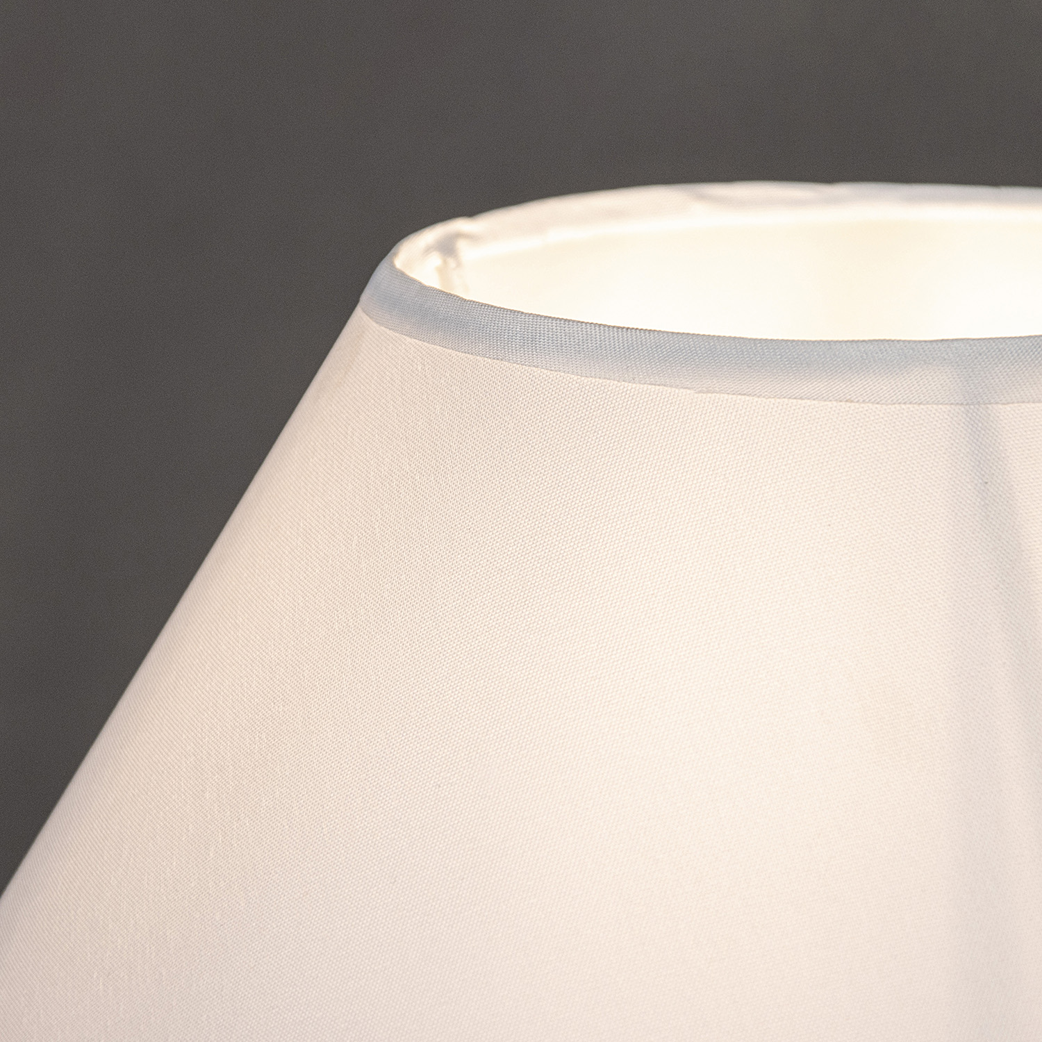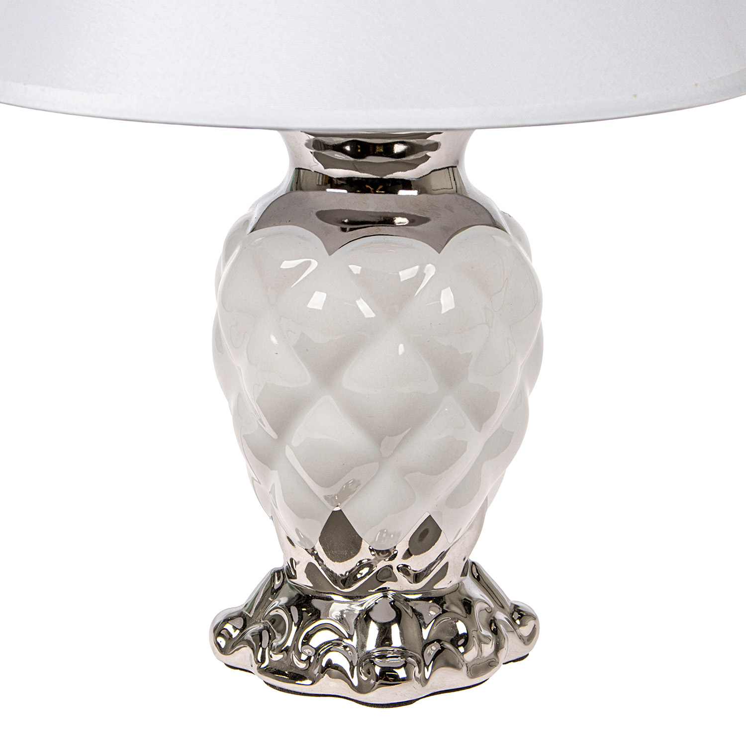 вид-светильник с абажуром, стиль-классика, высота изделия, 340мм, диаметр изделия, 260мм, материал основания-керамика, цвет основания белый, материал плафона-текстиль, цвет плафона-белый, степень защиты IP20, Макс. площадь помещения, 1 м2.