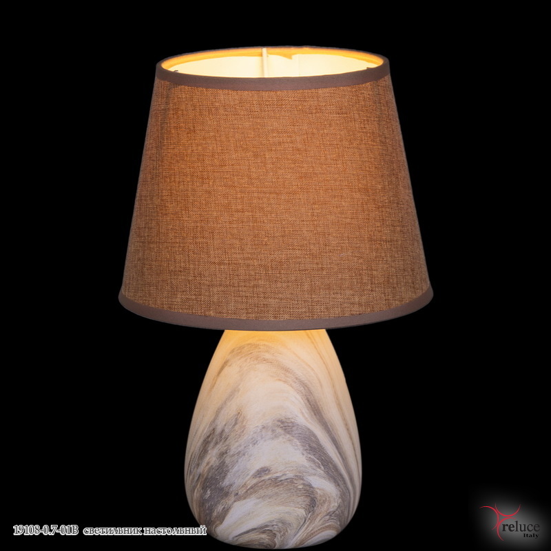 вид-светильник с абажуром, стиль-классика, высота изделия, 280мм, диаметр изделия, 180мм, материал основания-керамика, цвет основания бежевый, материал плафона-текстиль, цвет плафона-коричневый, степень защиты IP20, Макс. площадь помещения, 1 м2.