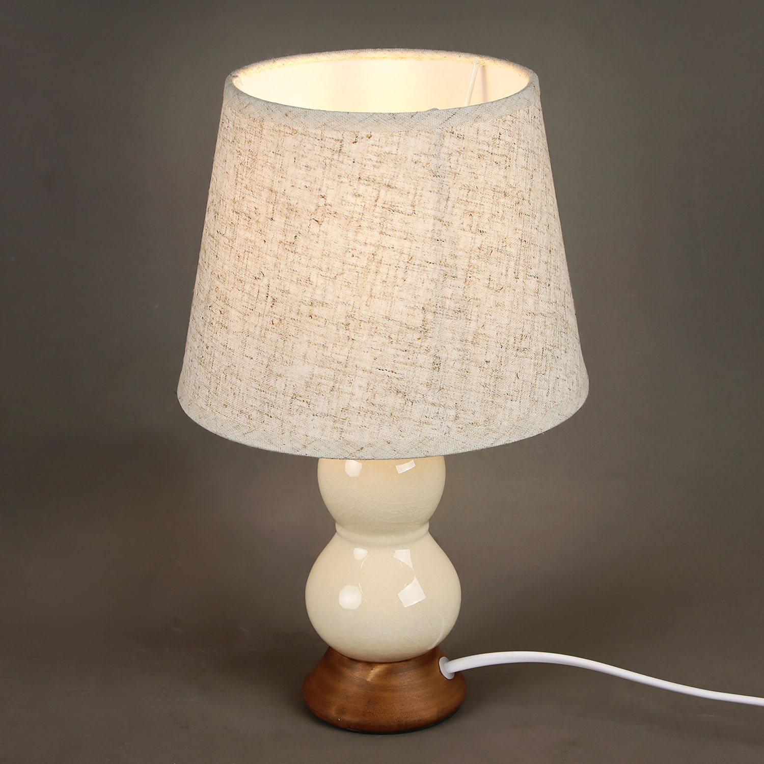 вид-светильник с абажуром, стиль-классика, высота изделия, 300мм, диаметр изделия, 190мм, материал основания-керамика, цвет основания бе;tdsq, материал плафона-текстиль, цвет плафона-бе;tdsq, степень защиты IP20, Макс. площадь помещения, 1 м2.