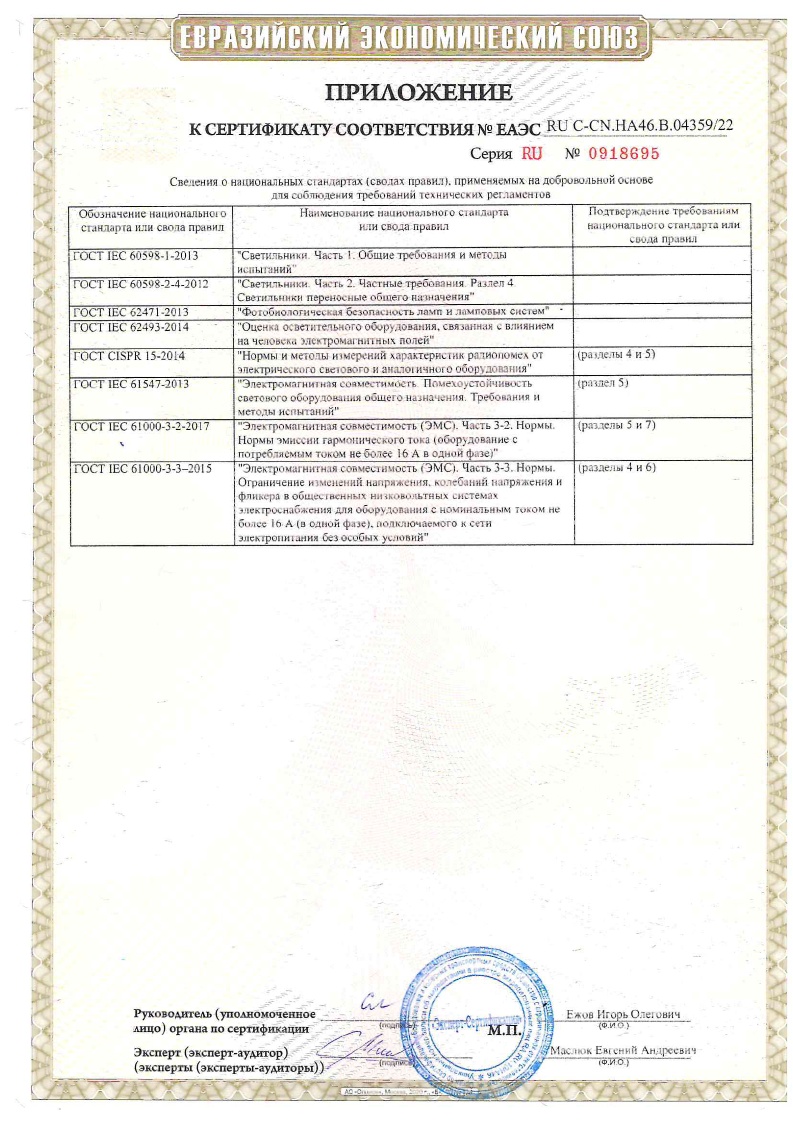Комплектация Светильник, паспорт