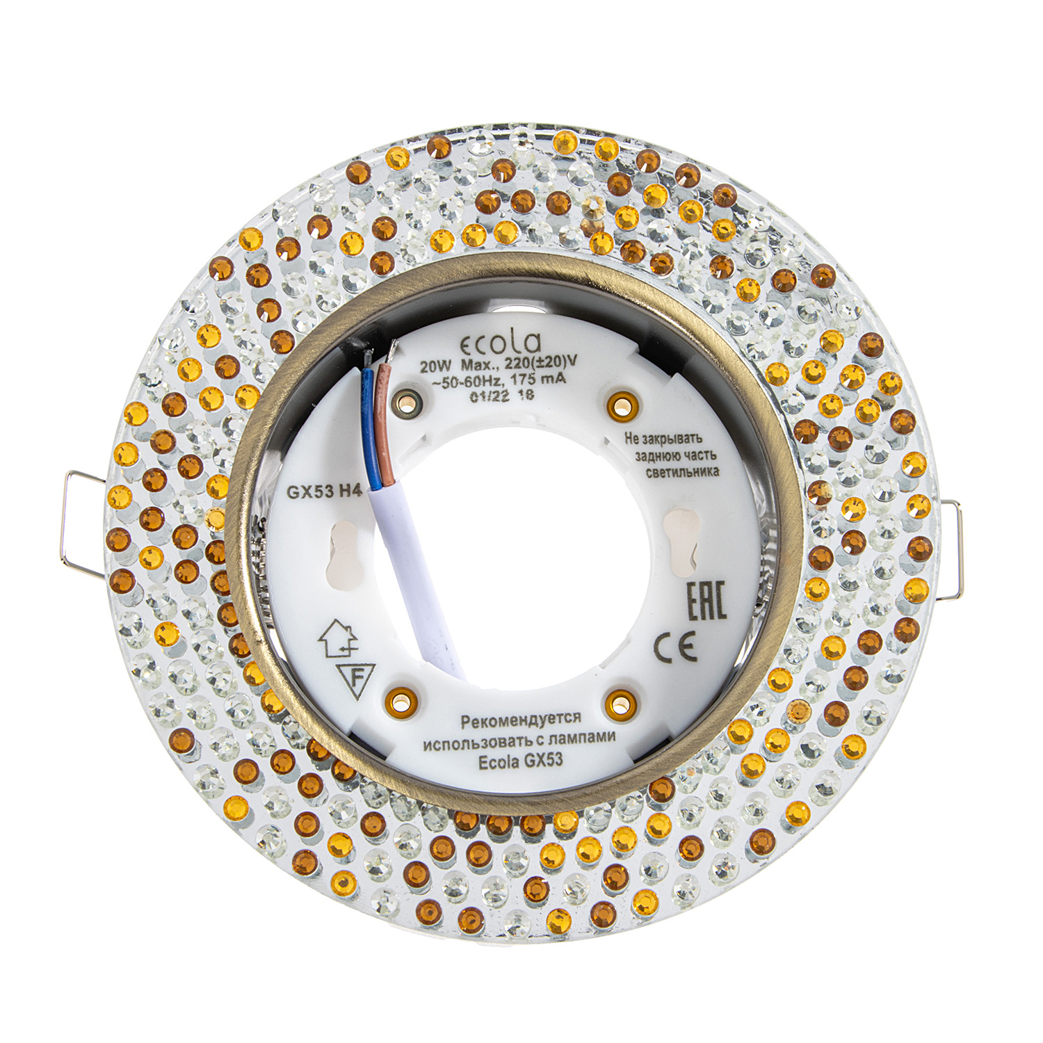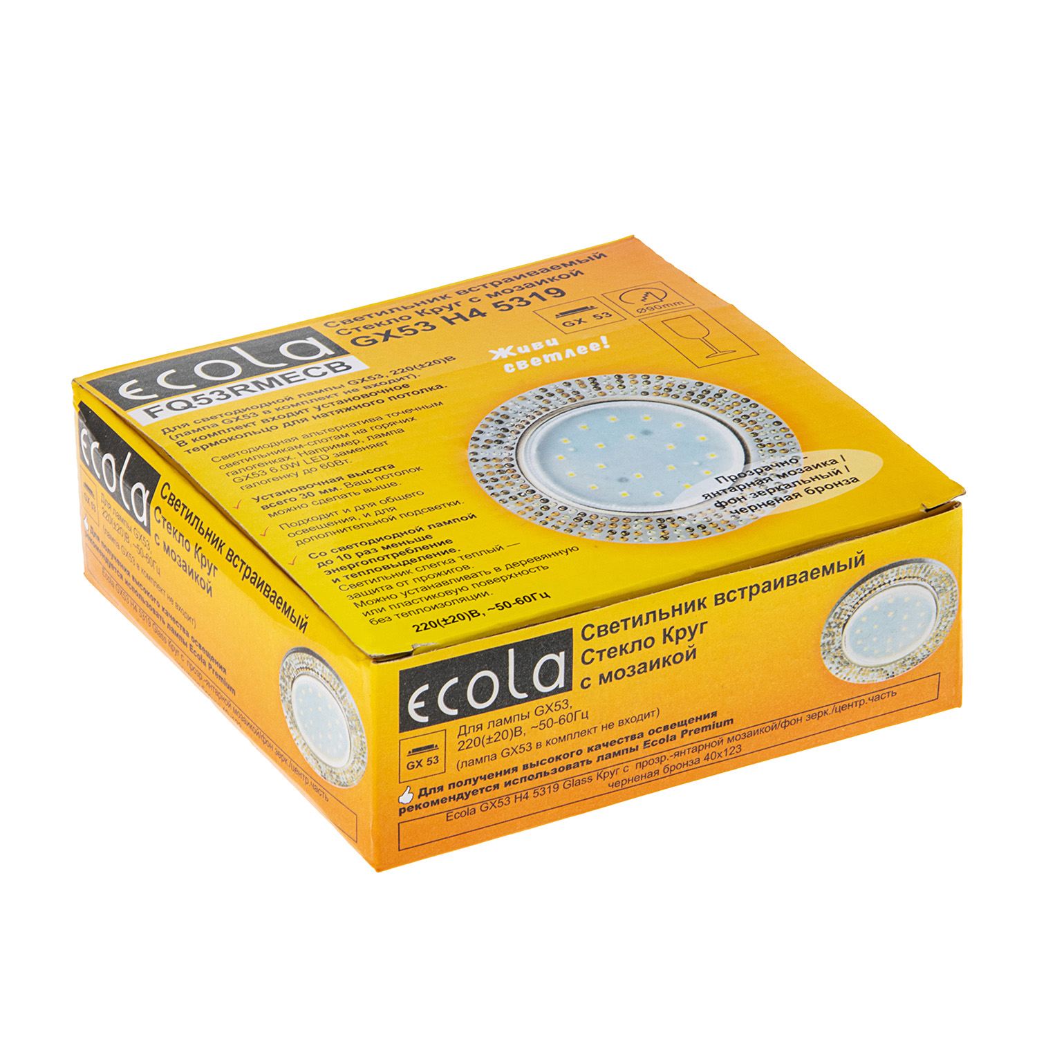 Светильник встраиваемый GX53 H4 5319 Ecola Glass Круг янтарь зерк/черн.бронза FQ53RMECB *10/30