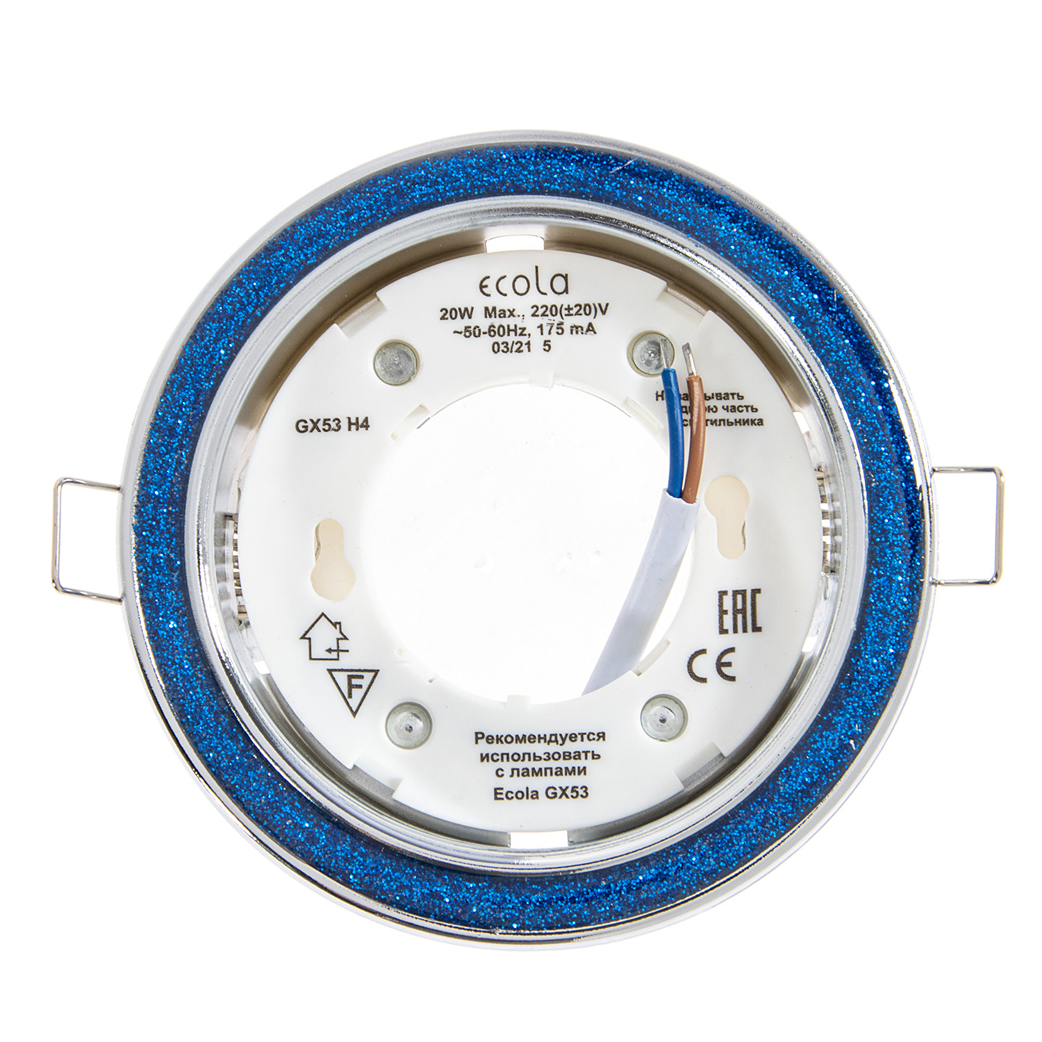 Светильник встраиваемый GX53 H4 DL3901 Ecola Круг стекло Голубой блеск хром FB53GRECB *10/50