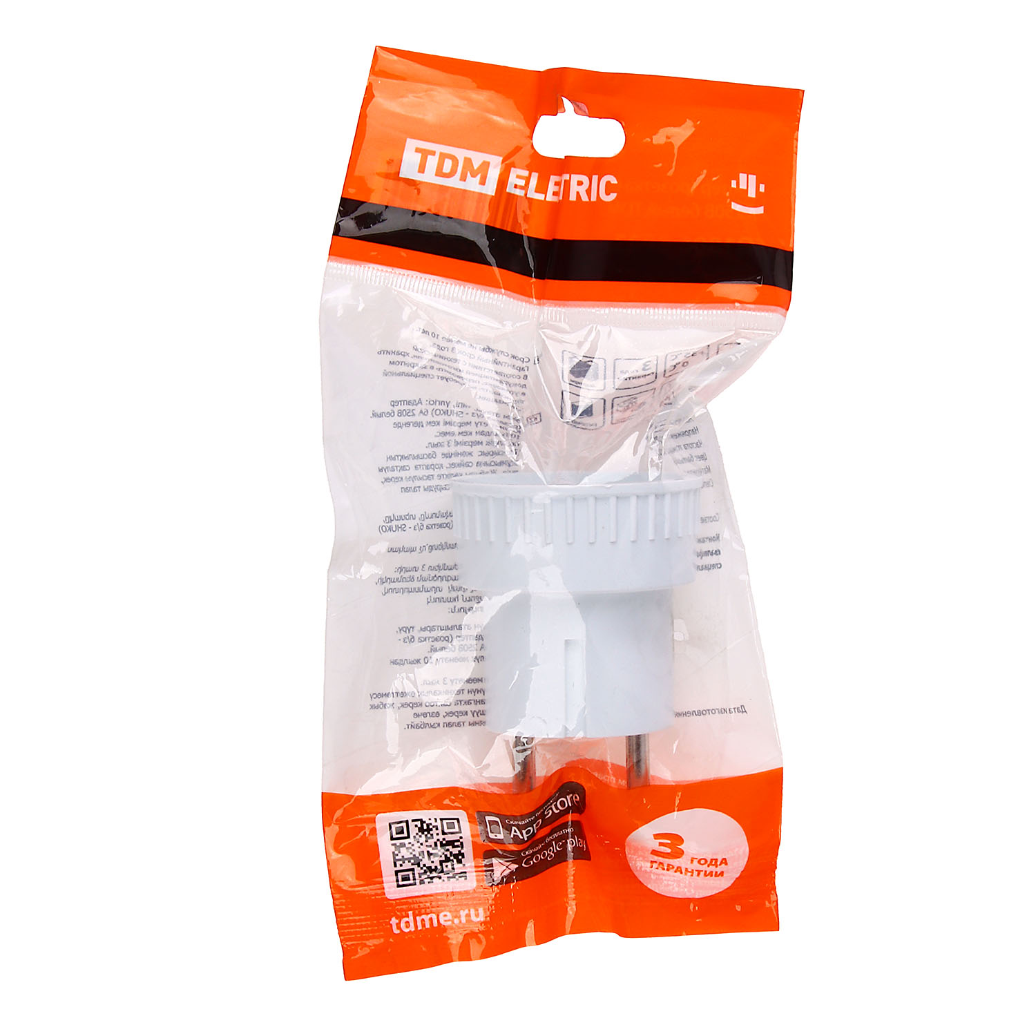 Адаптер без заземления на 6 А производства торговой фирмы TDM SQ1806-0023 необходим для подключения электроприборов с вилкой европейского типа к розеткам российского стандарта напряжением до 250 В.