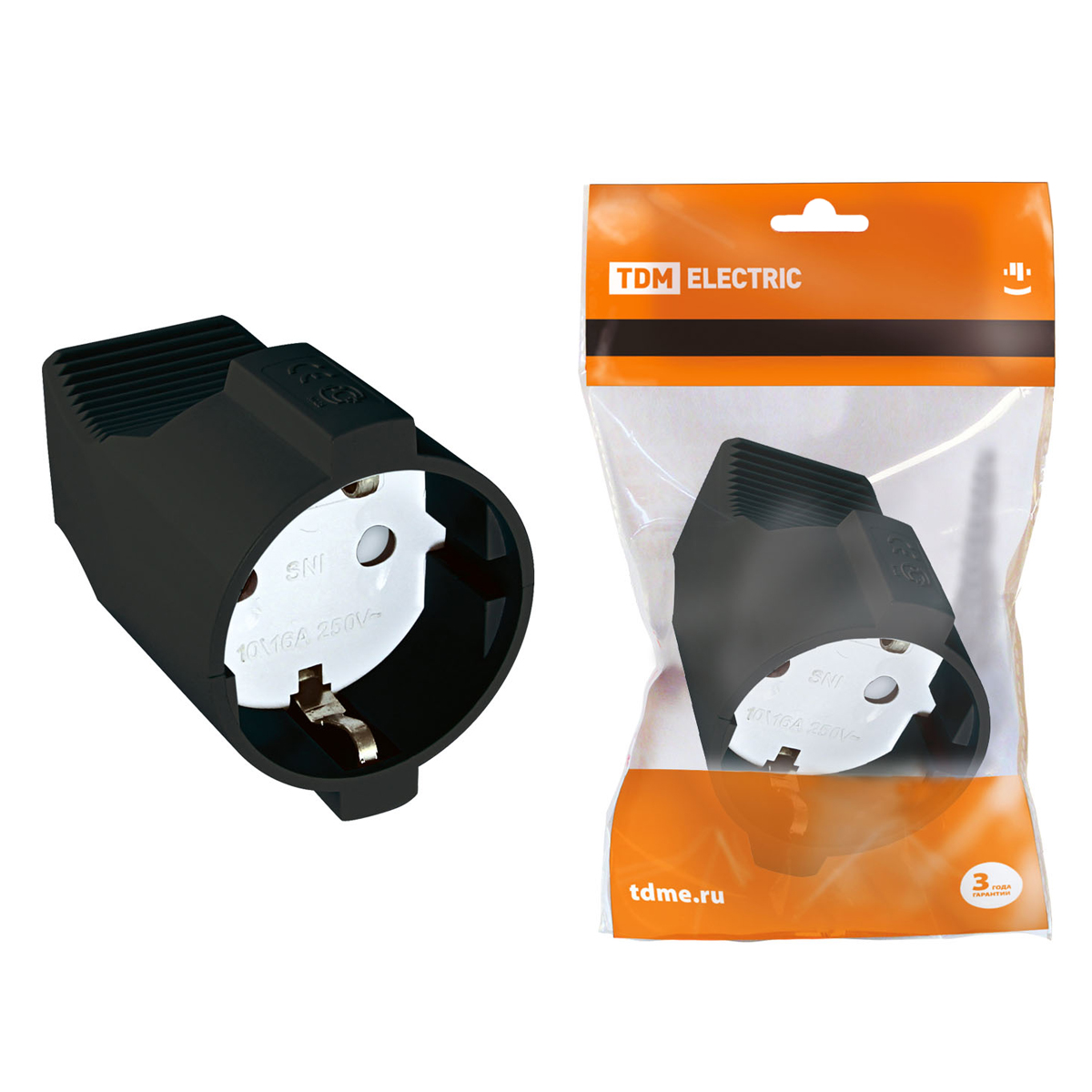 Розетка кабельная с з/к черный 16А 250В TDM SQ1806-0032 *10/20/200