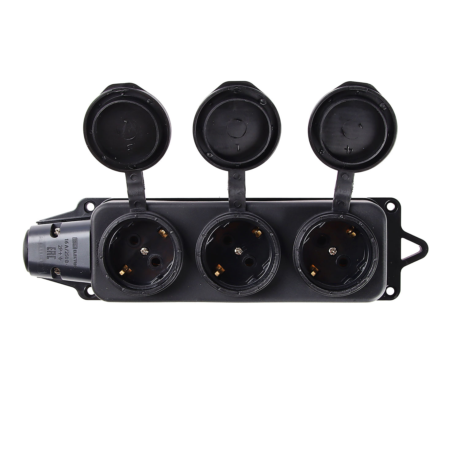 Розетка КАУЧУК переносная c заглушкой 3-мест 2Р+РЕ 16А 250В TDM SQ0612-0008 *1/36