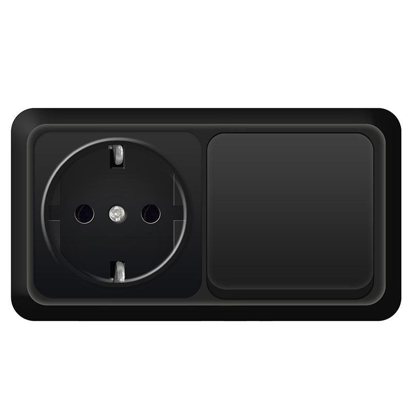 Помимо обычных электроустановочных изделий, ассортимент представлен комбинированными блоками – Розетка+Выключатель в одном корпусе.