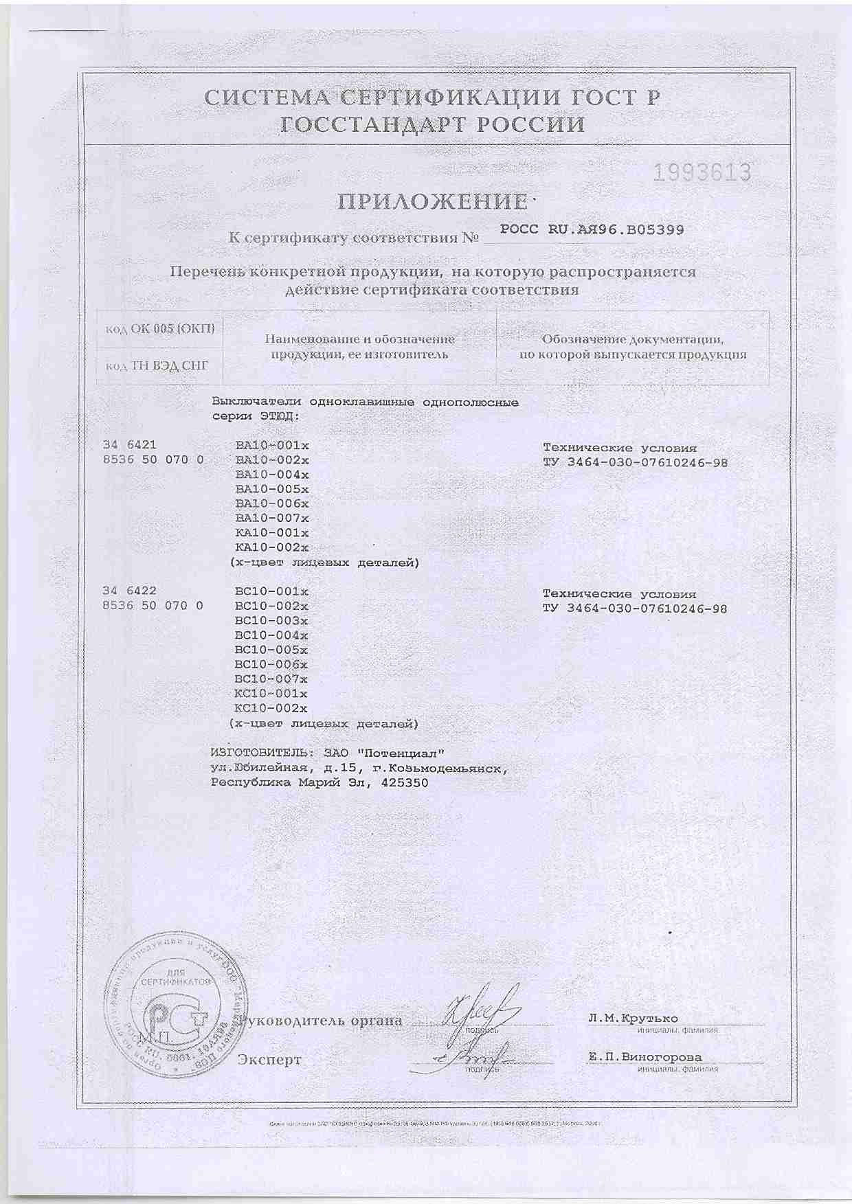 Тип номенклатуры Выключатель